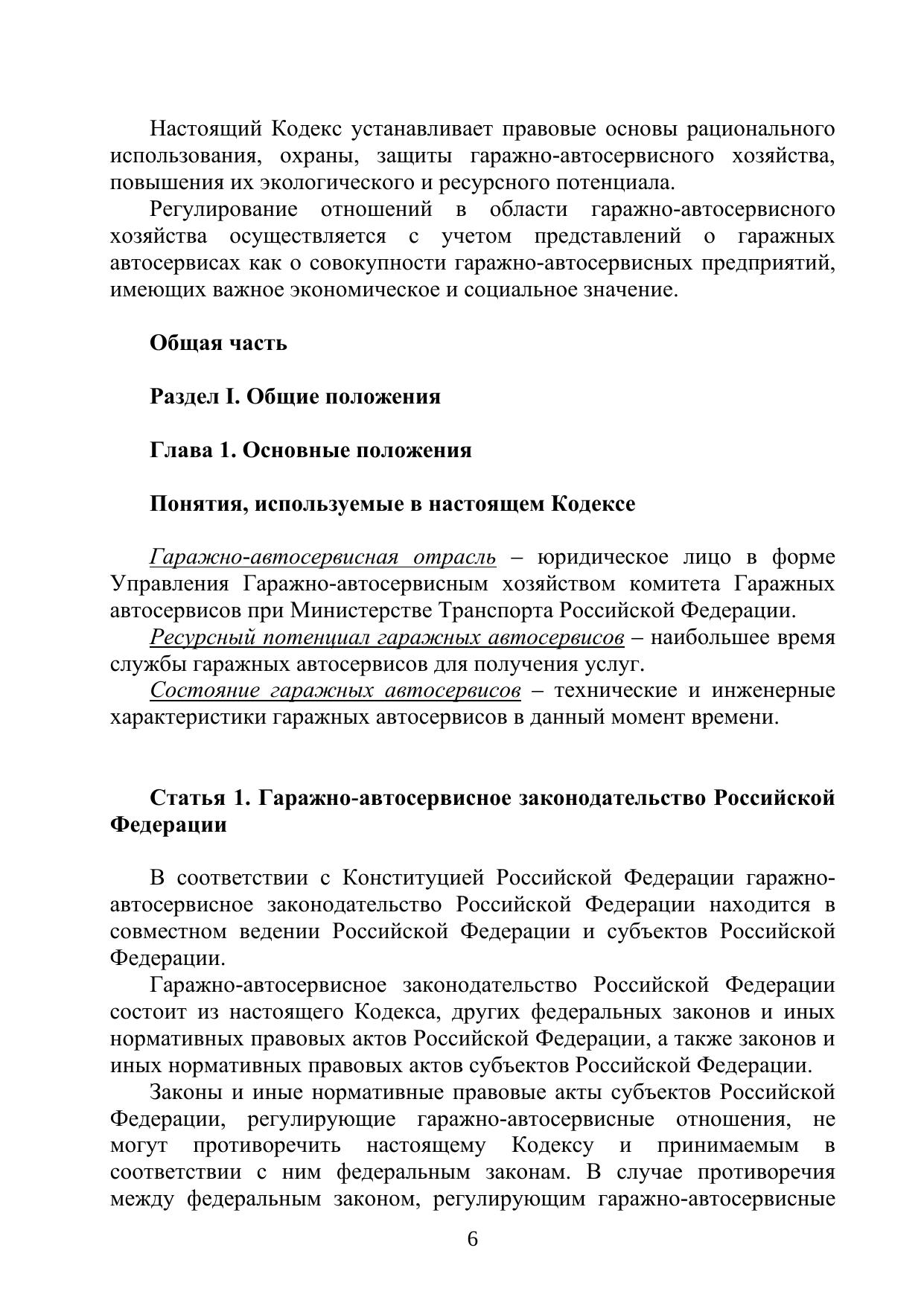 Гаражно-автосервисный кодекс состоит из 19 разделов и 21 главы.