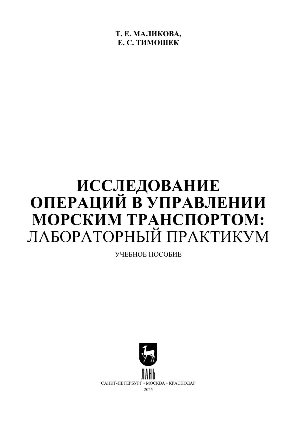 Исследование операций в управлении морским транспортом: лабораторный практикум