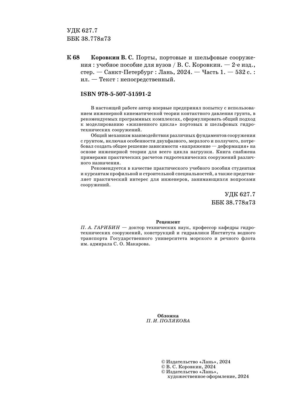 В настоящей работе автор впервые предпринял попытку с использованием инженерной теории контактного давления грунта, в рекомендуемых программных комплексах сформулировать общий подход к моделированию «жизненного цикла» портовых и шельфовых гидротехнических сооружений. Использование безразмерной кривой деформирования позволило получить взаимосвязанные напряжение и деформацию в элементах сооружения на всем цикле силового нагружения конструкции, взаимодействующей с грунтом, включая частный случай — предельное состояние. Книга снабжена примерами практических расчетов гидротехнических сооружений различного назначения. Рекомендуется в качестве практического учебного пособия студентам и курсантам профильной и строительной специальностей.