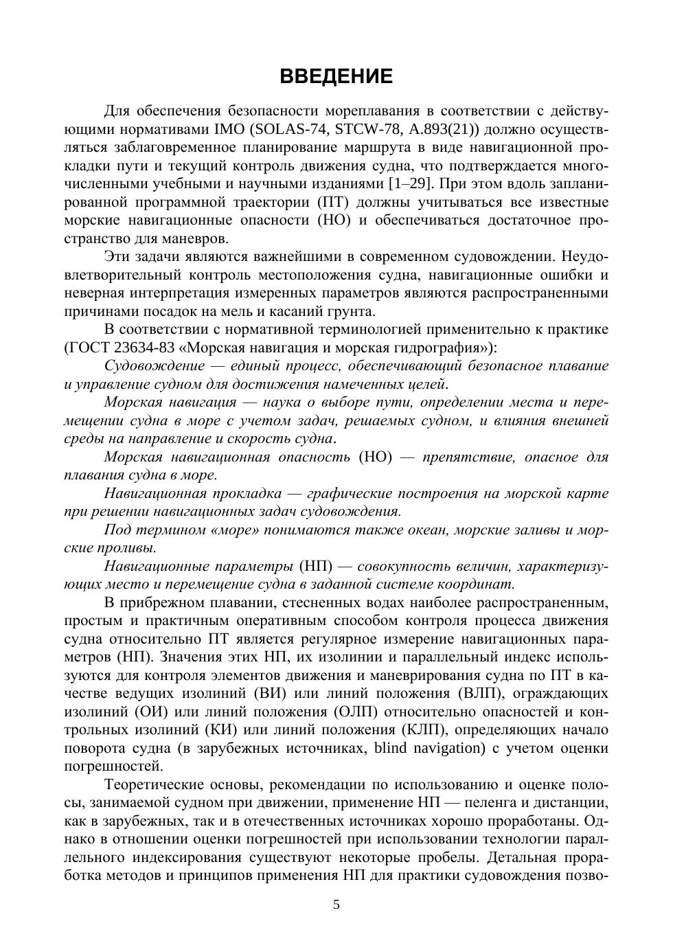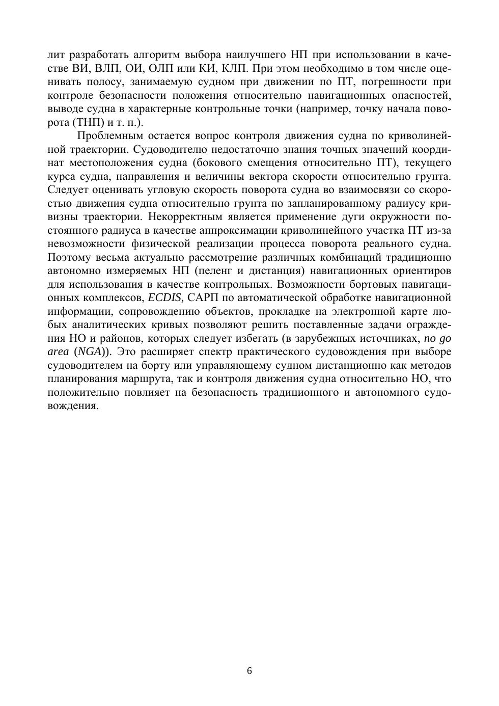 Рассматриваются методы использования основных навигационных параметров для обеспечения контроля движения судна по запланированному пути. Математическим аппаратом, реализующим эффективные решения и рекомендации выбора параметров или их комбинации, в зависимости от условий плавания, служат классические методы навигации (теория изолиний и линий положения). Демонстрируется новый вариант параллельного индексирования с базовой линией по двум ориентирам, как линейного створа, позволяющий ориентироваться в случае неис-правностей в системах компаса. Дается графическая интерпретация и сравнительный анализ изменения погрешностей методов в зависимости от дистанции до используемых ориентиров, рекомендации и особенности практического применения методов контроля движения судна по запланированному пути, исходя из навигационной обстановки района плавания. Формализация этих методов позволит судоводителю, автоматическому навигационному комплексу или системе управления автономного судна решать задачи обработки со-ответствующей навигационной информации на качественно новом уровне. Рекомендуется в качестве учебного пособия для дисциплины «Навигация и лоция» и дополнительного профессионального образования судоводителей, а также специальностей «Управление водным транспортом и гидрографическое обеспечение судоходства», «Радиосвязь и электрорадионавигация морского флота» и разработчикам систем навигации и управления судном.