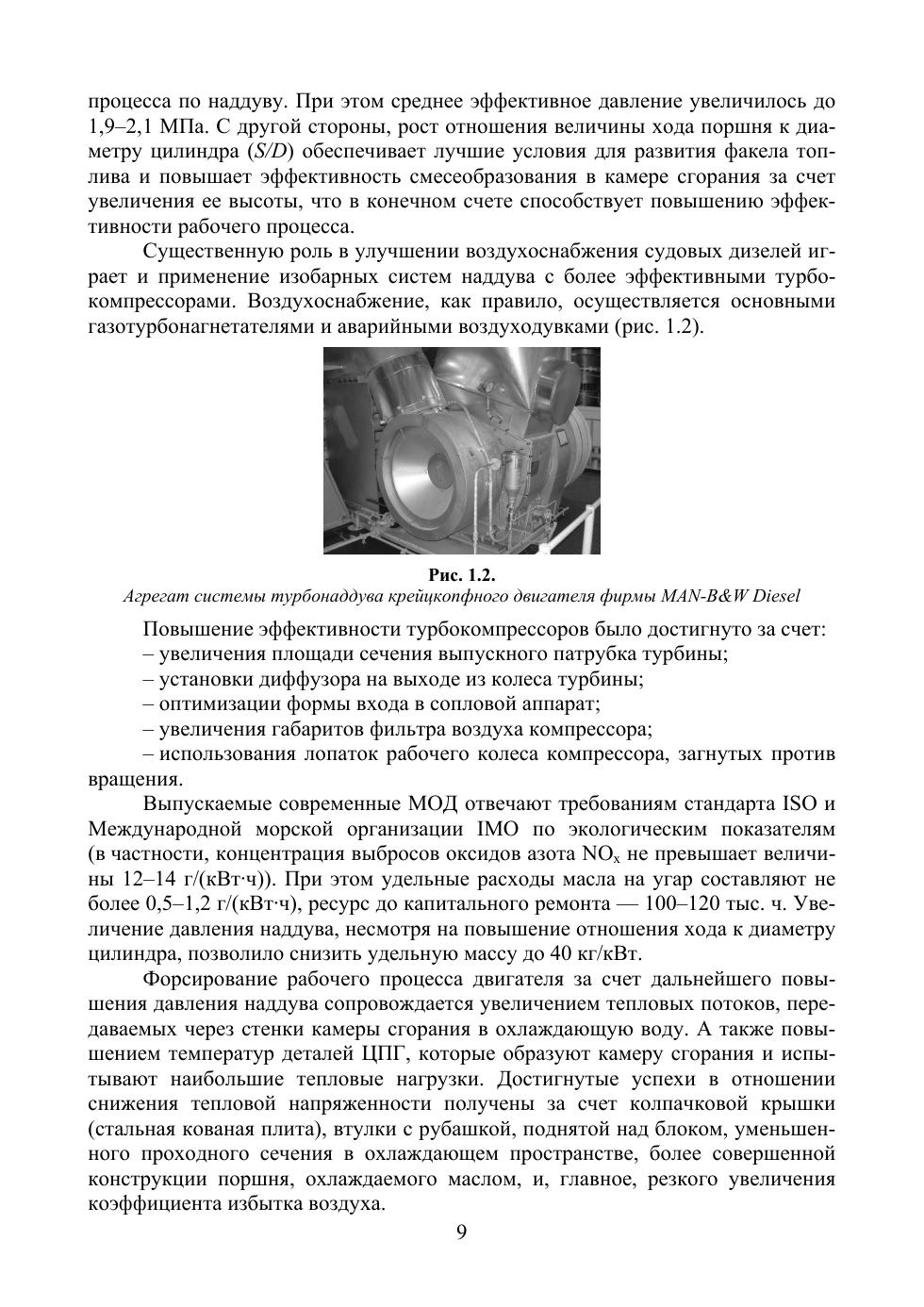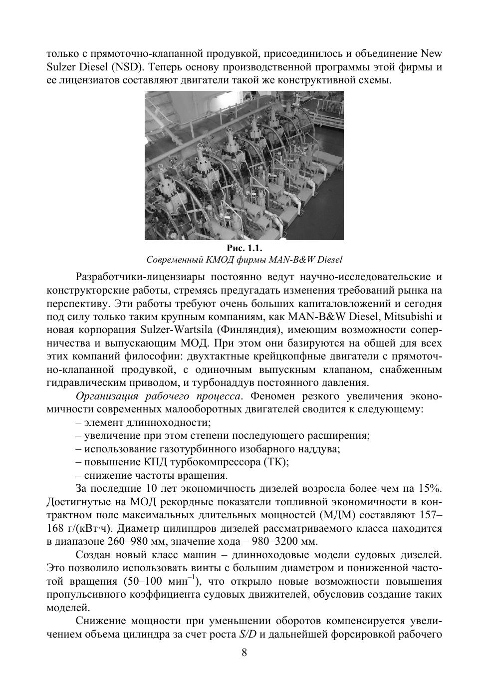 Рассмотрены типы и конструктивные особенности основных моделей современных судовых двигателей, выпускаемых зарубежными дизелестроительными фирмами. Представлен обширный графический материал по элементам конструкций и деталям цилиндропоршневой группы, а также топливной аппаратуры рассматриваемого класса судовых дизелей. Графический материал по конструкциям отдельных деталей двигателей значительно расширяет описательную часть. Особое внимание уделено конструктивным решениям задач по обеспечению высокой эффективности систем наддува и топливоподачи в современных дизелях последнего поколения. Представлен также материал, касающийся технической эксплуатации судовых двигателей, требований, предъявляемых к ним. Рассмотрены эксплуатационные режимы, в частности работа судового двигателя на винт. Соответствует современным требованиям Федерального государственного образовательного стандарта среднего профессионального образования и профессиональным квалификационным требованиям. Учебное пособие предназначено для учащихся средних учебных заведений водного транспорта, изучающих судовые дизельные установки.