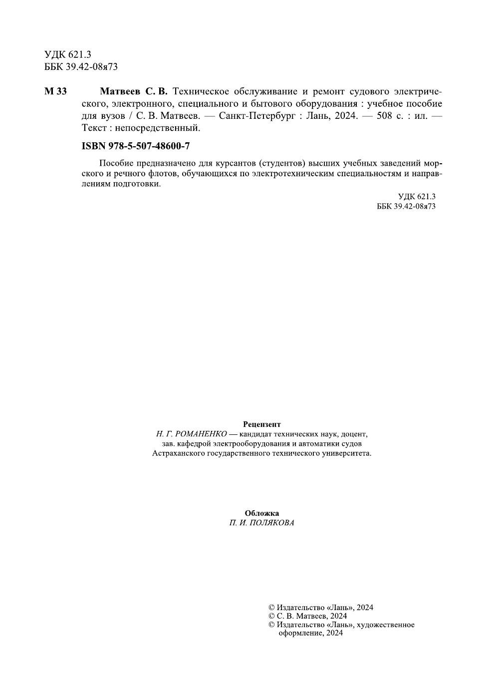 Техническое обслуживание и ремонт судового электрического, электронного, специального и бытового оборудования