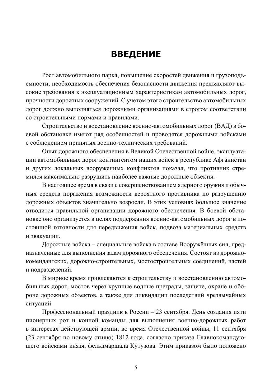 Представлены материалы курса учебной дисциплины «Военно-дорожная подготовка», рассмотрены характеристики основных элементов военно-автомобильных дорог, технические требования, предъявляемые к ним, порядок проектирования и расчета основных конструктивных элементов автомобильных дорог, свойства и классификация грунтов и дорожно-строительных материалов, конструкции и характеристики сборных дорожных покрытий, порядок проведения ускоренных изысканий.