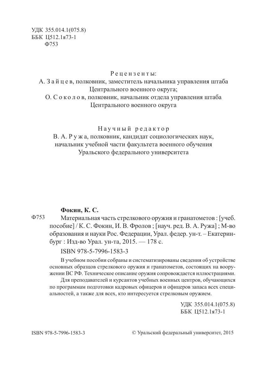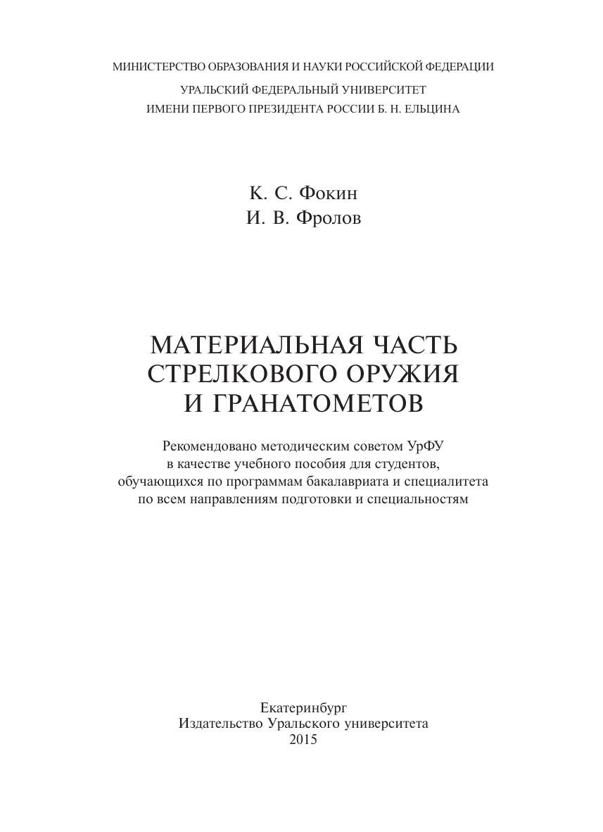 Материальная часть стрелкового оружия и гранатометов: учебное пособие