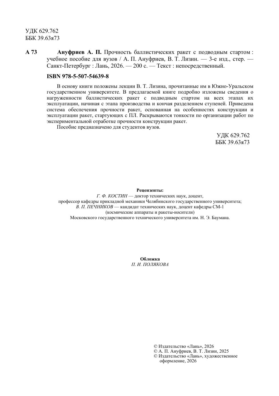 В основу книги положены лекции В. Т. Лизина, прочитанные им в Южно-Уральском государственном университете. В предлагаемой книге подробно изложены сведения о нагруженности баллистических ракет с подводным стартом на всех этапах их эксплуатации, начиная с этапа производства и кончая разделением ступеней. Приведена система обеспечения прочности ракет, основанная на особенностях конструкции и эксплуатации ракет, стартующих с ПЛ. Раскрываются тонкости по организации работ по экспериментальной отработке прочности конструкции ракет. Пособие предназначено для студентов вузов.