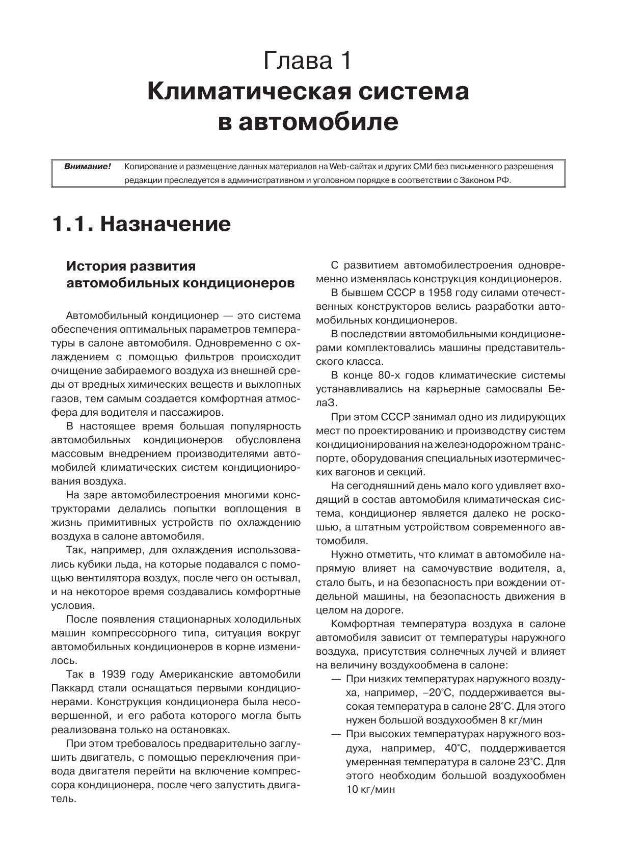 Настоящая книга представляет собой практическое пособие по устройству, работе климатической системы современного автомобиля, а также описание возможных неисправностей и рекомендации по их устранению. В книге описываются основные принципы построения и функциональные особенности отдельных узлов и электрооборудования климатической системы. Кроме того, отдельная глава книги посвящена особенностям заправки и элементам техники безопасности при работе с климатическими системами. Все разделы и подразделы книги дополнены многочисленными фотографиями, рисунками и таблицами, которые являются графическим дополнением. Книга предназначена для специалистов, профессионально занимающихся ремонтом автомобильных климатических систем, а также для обычных автолюбителей, интересующихся устройством и принципом работы автомобильных климатических систем. В книге используются материалы статей, Интернет публикаций по данной теме.