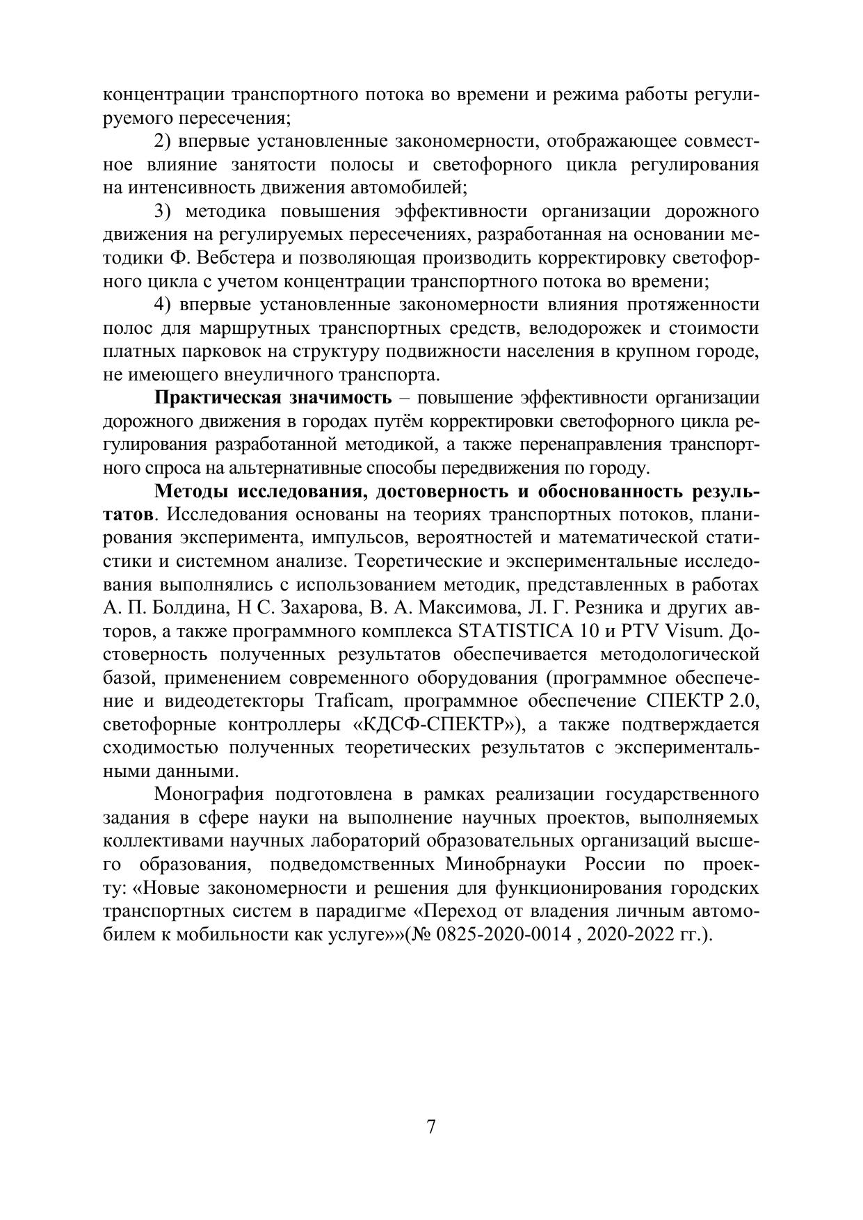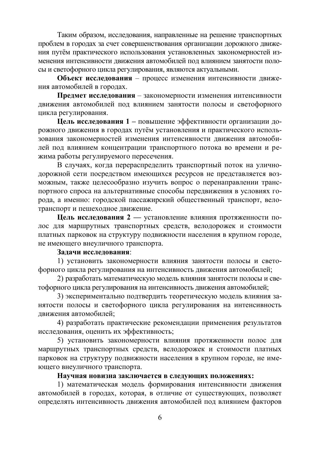 В монографии изложены результаты исследований авторов в области совершенствования организации и управления дорожным движением. Установлено, что процесс изменения интенсивности под влиянием занятости полосы и доли разрешающего сигнала в общей продолжительности светофорного цикла регулирования описывается однофакторными квадратичной и линейной моделями соответственно. Разработана двухфакторная мультипликативная модель влияния занятости полосы и светофорного цикла регулирования на интенсивность движения автомобилей. Проведены экспериментальные исследования, которые подтвердили разработанные теоретические модели. Разработана практическая методика, направленная на повышение эффективности организации дорожного движения на регулируемых пересечениях с учетом концентрации транспортного потока во времени. Применение данной методики позволит сократить время простоя автомобилей при проезде через регулируемое пересечение, расположенное на уличнодорожной сети города. Установлены закономерности влияния протяженности полос для маршрутных транспортных средств, велодорожек и стоимости платных парковок на структуру подвижности населения в городах, не имеющего внеуличного транспорта. Издание предназначено для руководителей предприятий транспортной отрасли, инженерно-технических работников, студентов и аспирантов, изучающих дисциплины, связанные с организацией дорожного движения. Монография выполнена по ГЗ № 0825-2020-0014, 2020-2022 гг.