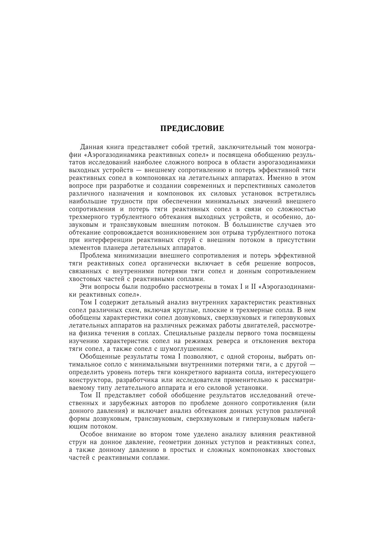 Третий том «Аэрогазодинамики реактивных сопел» посвящен обобщению результатов исследований наиболее сложного вопроса в области аэрогазодинамики выходных устройств — внешнего сопротивления и потерь эффективной тяги реактивных сопел в компоновках на летательных аппаратах. Представлены потери эффективной тяги сопел с учетом основных составляющих: внутренних потерь, донного и внешнего сопротивлений, а также потерь, связанных с интерференцией реактивных струй с внешним потоком в присутствии элементов планера летательных аппаратов. Анализ интегральных аэрогазодинамических характеристик хвостовых частей с реактивными соплами различных типов сопровождается обобщением результатов решения основных фундаментальных проблем выходных устройств, связанных с особенностями отрывного и безотрывного обтекания их внешним турбулентным потоком и обеспечением минимального внешнего сопротивления. Книга предназначена научно-техническим работникам, специалистам в области авиадвигателестроения, аспирантам и студентам соответствующих специальностей вузов.