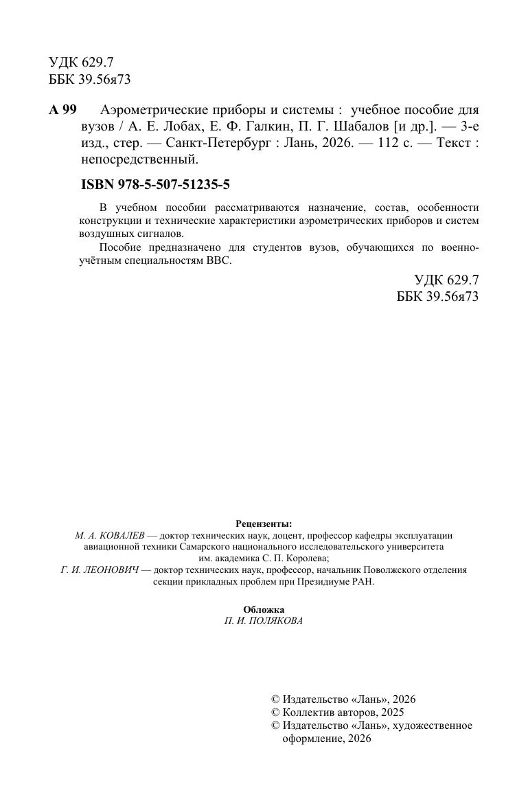 В учебном пособии рассматриваются назначение, состав, особенности конструкции и технические характеристики аэрометрических приборов и систем воздушных сигналов. Пособие предназначено для студентов вузов, обучающихся по военно-учётным специальностям ВВС.