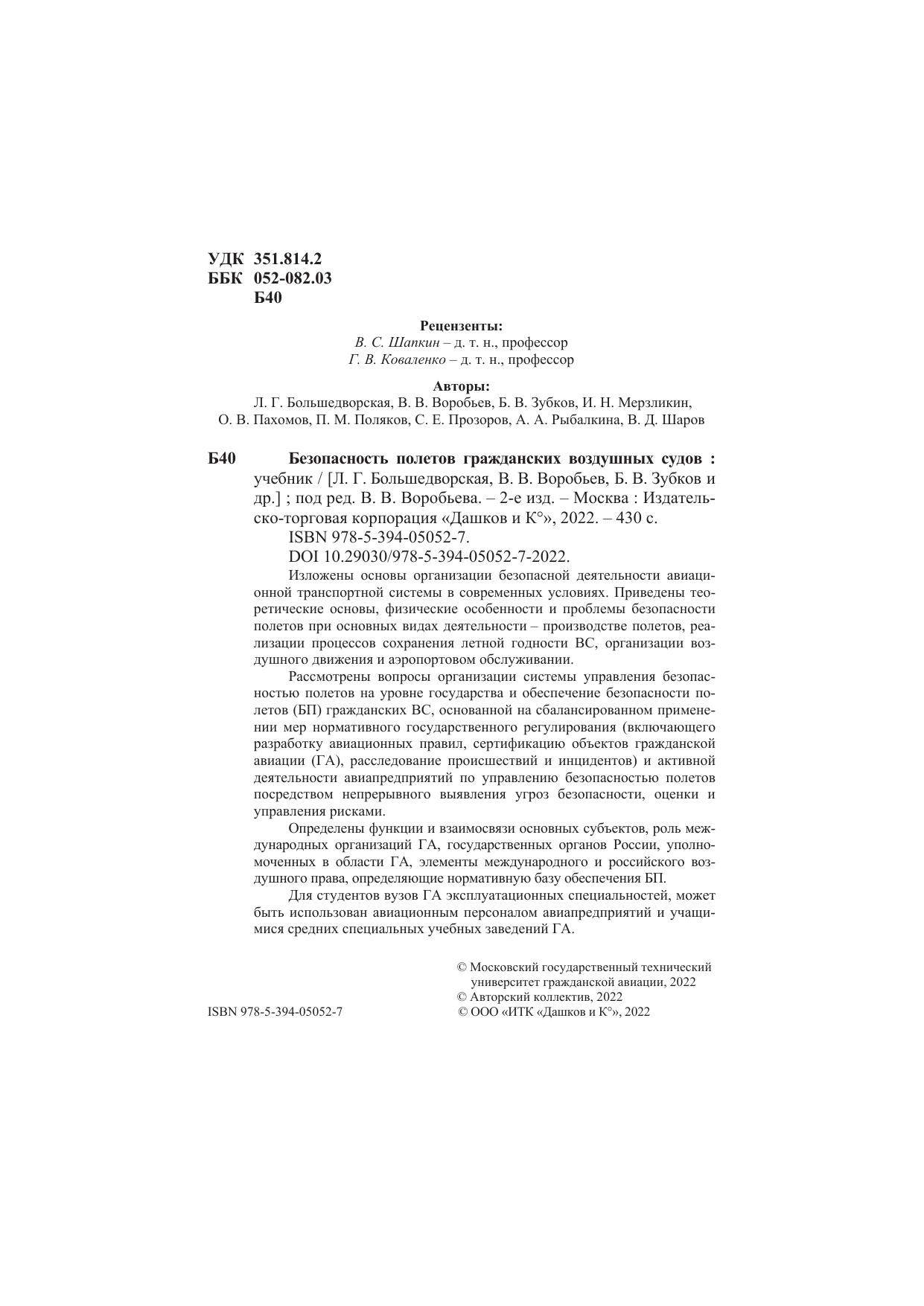 Изложены основы организации безопасной деятельности авиационной транспортной системы в современных условиях. Приведены теоретические основы, физические особенности и проблемы безопасности полетов при основных видах деятельности – производстве полетов, реализации процессов сохранения летной годности ВС, организации воздушного движения и аэропортовом обслуживании.