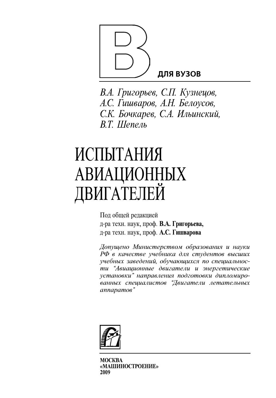 Гриф: Допущено Министерством образования и науки РФ в качестве учебника для студентов высших учебных заведений, обучающихся по специальности “Авиационные двигатели и энергетические установки” направления подготовки дипломированных специалистов “Двигатели летательных аппаратов”