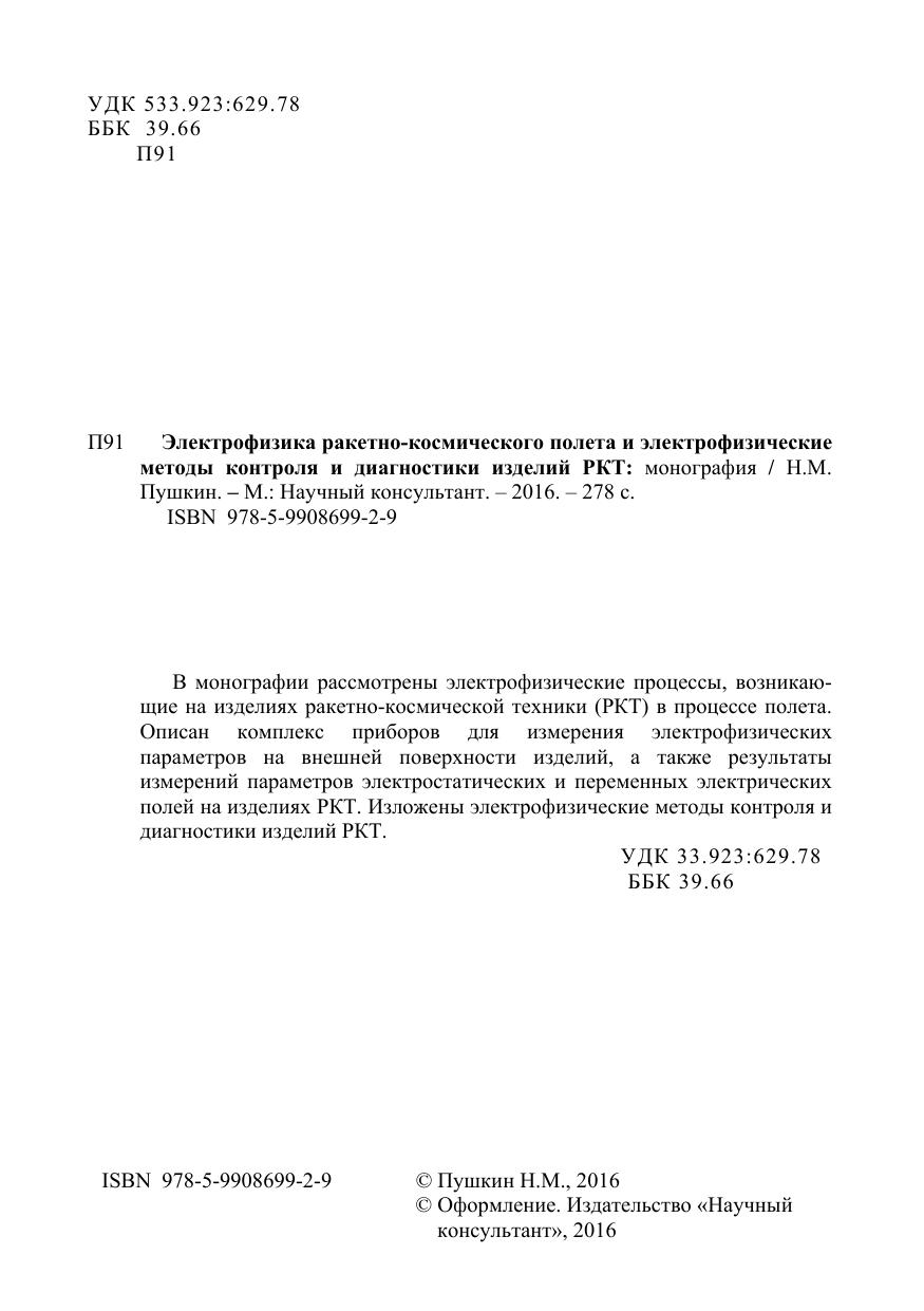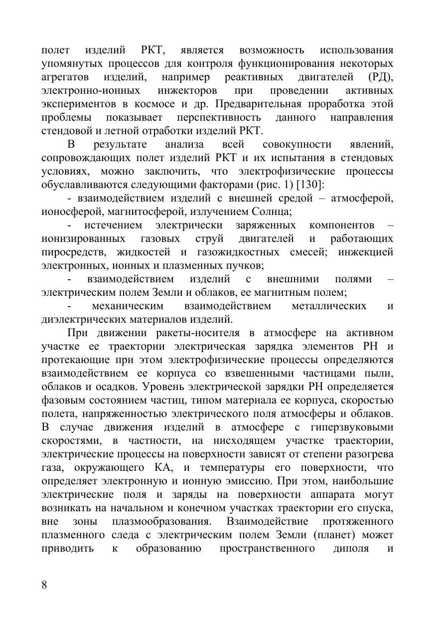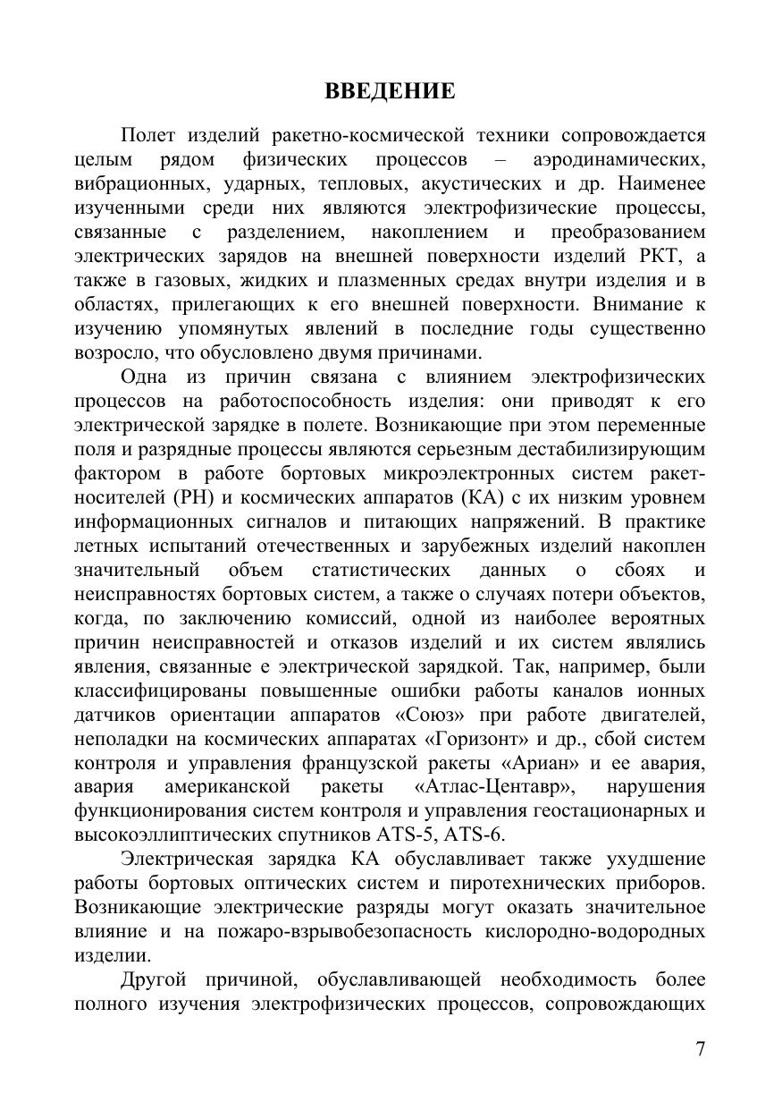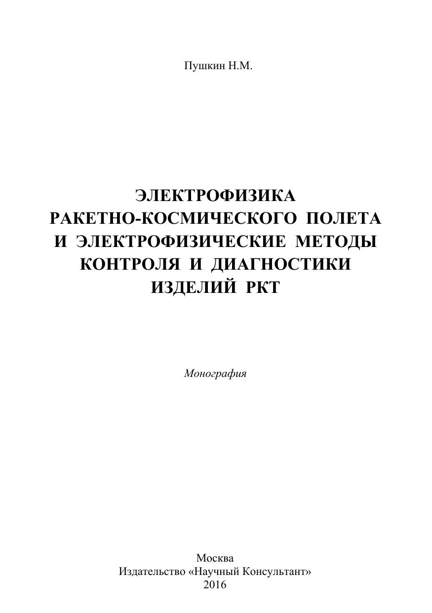 В монографии рассмотрены электрофизические процессы, возникающие на изделиях ракетно-космической техники (РКТ) в процессе полета. Описан комплекс приборов для измерения электрофизических параметров на внешней поверхности изделий, а также результаты измерений параметров электростатических и переменных электрических полей на изделиях РКТ. Изложены электрофизические методы контроля и диагностики изделий РКТ.