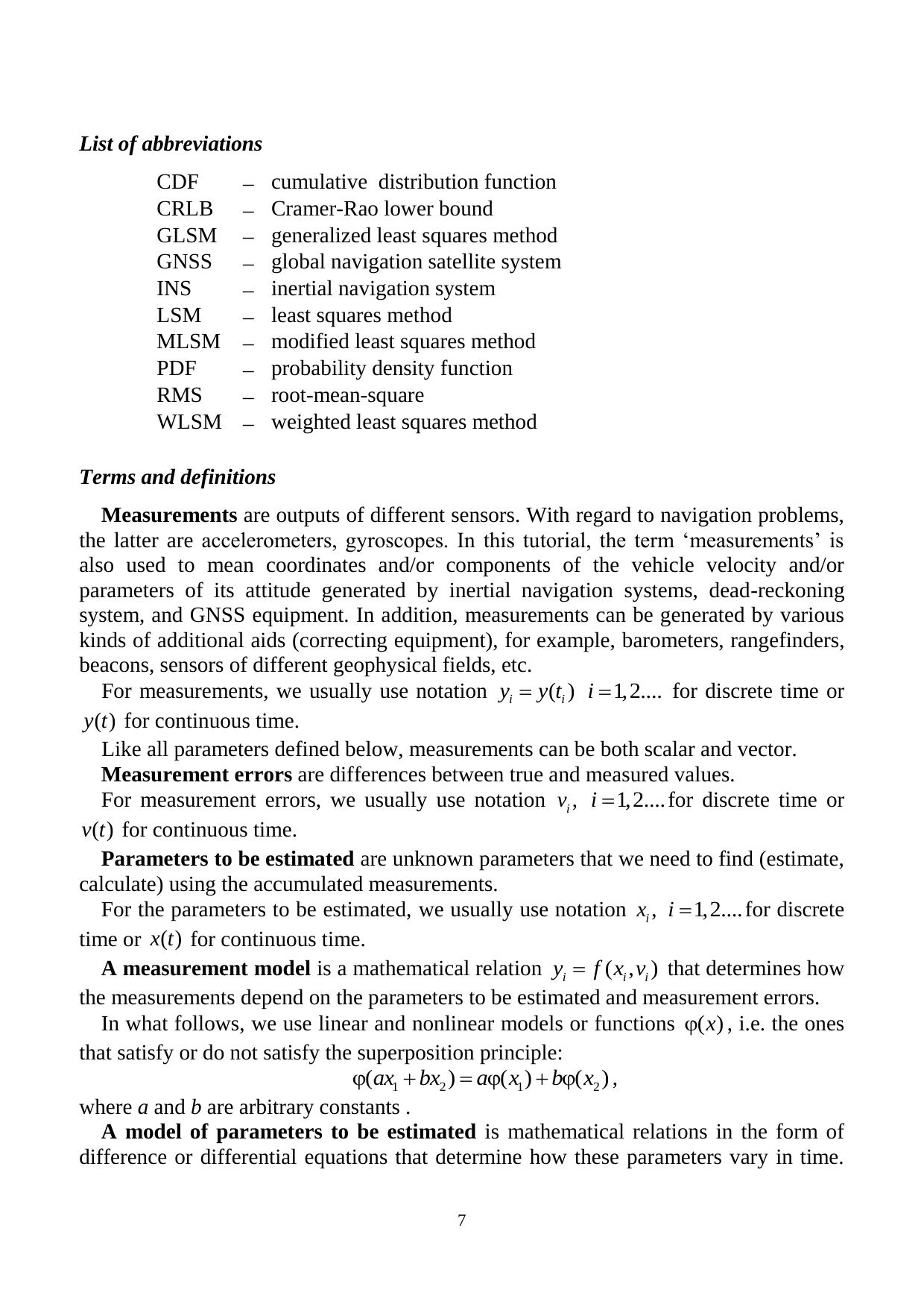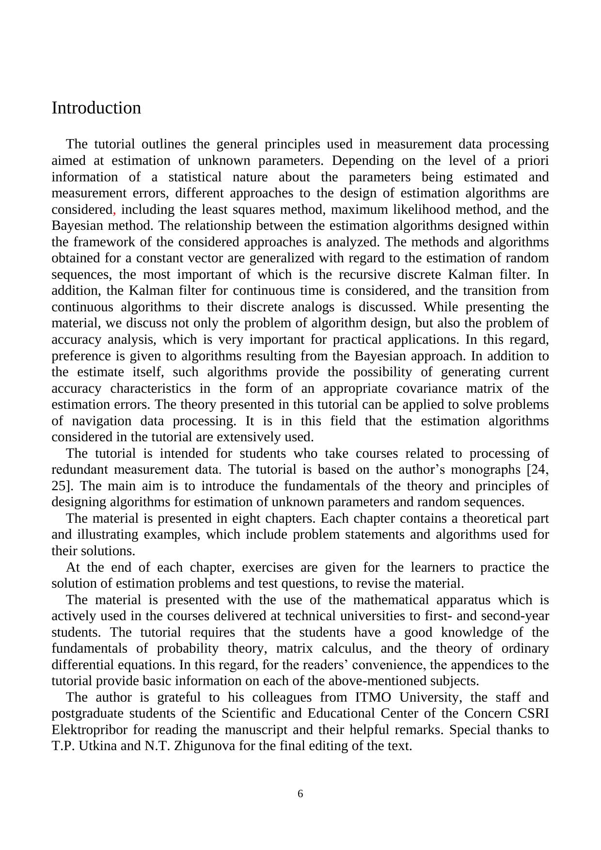 The general principles used in the measurement data processing aimed at estimation of unknown parameters and random sequences are described. Different approaches and methods for designing estimation algorithms are discussed. Considerable attention is given to the recursive discrete Kalman filter and its analog for continuous time. The tutorial is intended for students and graduate students involved in processing of redundant measurement data. The theory is supposed to help them solve problems related to navigation data processing.