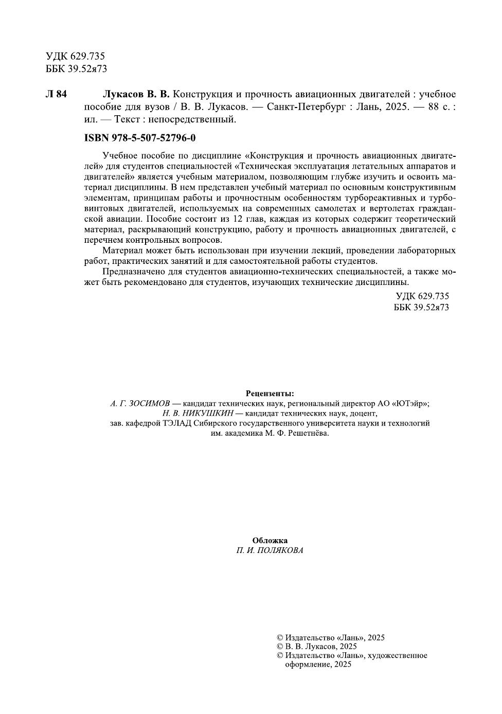 Учебное пособие по дисциплине «Конструкция и прочность авиационных двигателей» для студентов специальностей «Техническая эксплуатация летательных аппаратов и двигателей» является учебным материалом, позволяющим глубже изучить и освоить материал дисциплины. В нем представлен учебный материал по основным конструктивным элементам, принципам работы и прочностным особенностям турбореактивных и турбовинтовых двигателей, используемых на современных самолетах и вертолетах гражданской авиации. Пособие состоит из 12 глав, каждая из которых содержит теоретический материал, раскрывающий конструкцию, работу и прочность авиационных двигателей, с перечнем контрольных вопросов. Материал может быть использован при изучении лекций, проведении лабораторных работ, практических занятий и для самостоятельной работы студентов. Предназначено для студентов авиационно-технических специальностей, а также может быть рекомендовано для студентов, изучающих технические дисциплины.