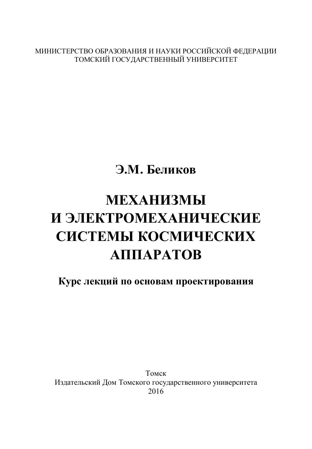 Mеханизмы и электромеханические системы космических аппаратов. Курс лекций по основам проектирования