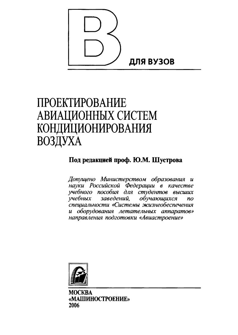 Проектирование авиационных систем кондиционирования воздуха: Учебное пособие для студентов высших технических учебных заведений