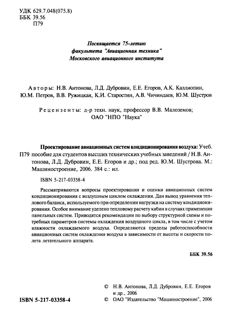 Гриф: Допущено Министерством образования и науки Российской Федерации в качестве учебного пособия для студентов высших учебных заведений, обучающихся по специальности «Системы жизнеобеспечения и оборудования летательных аппаратов» направления подготовки «Авиастроение»