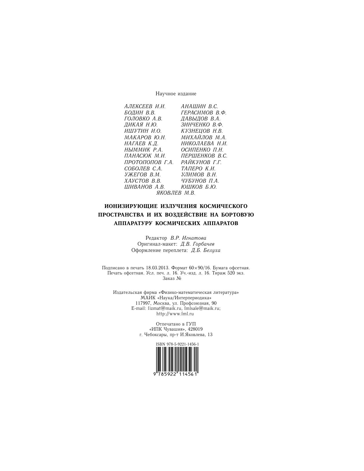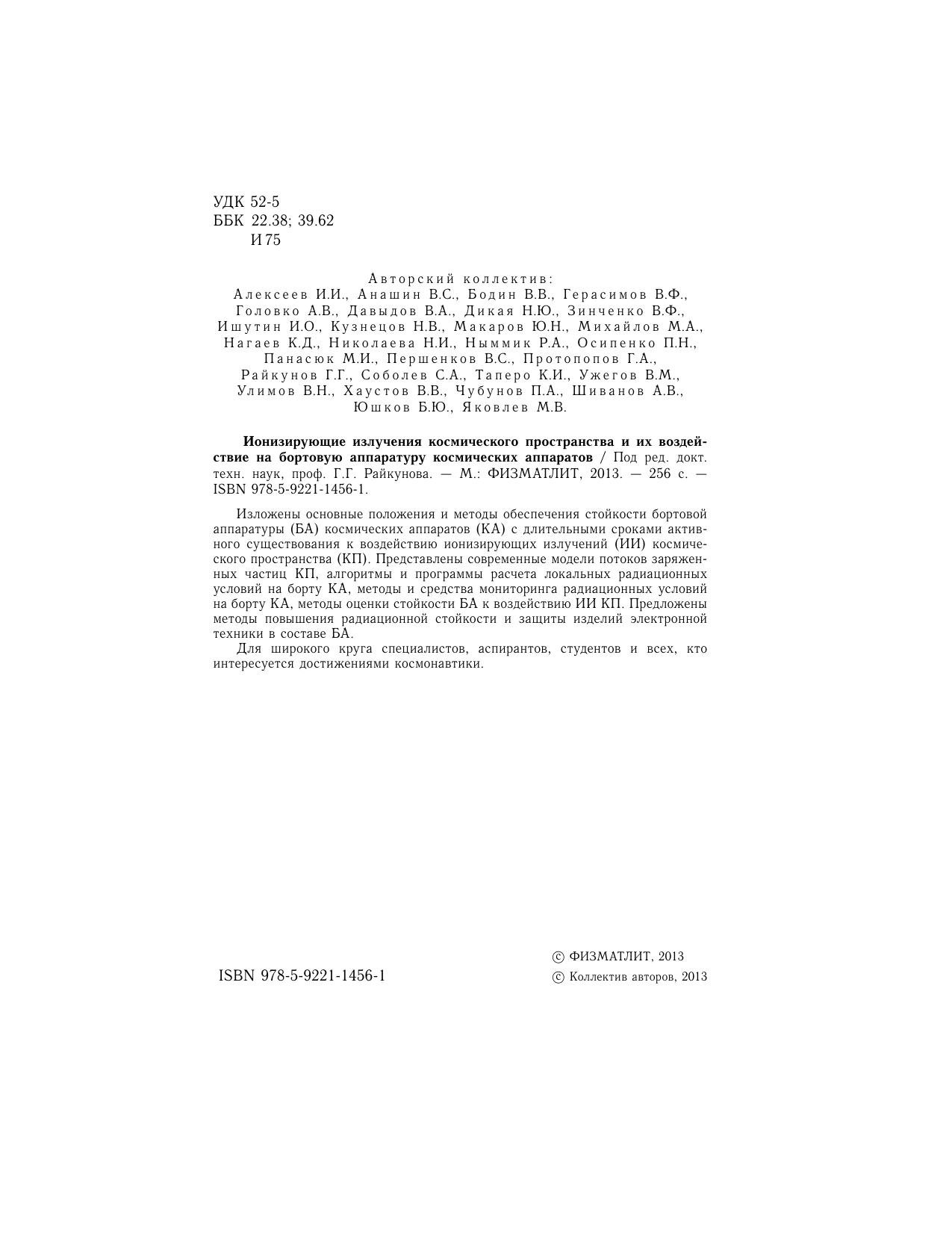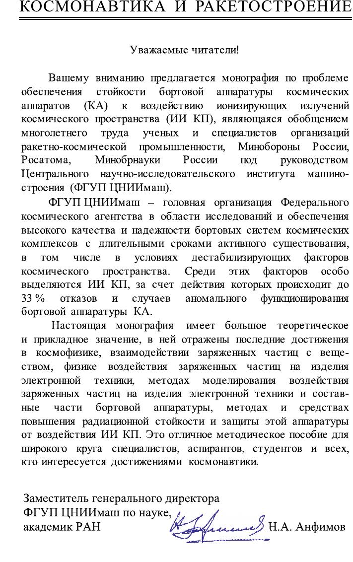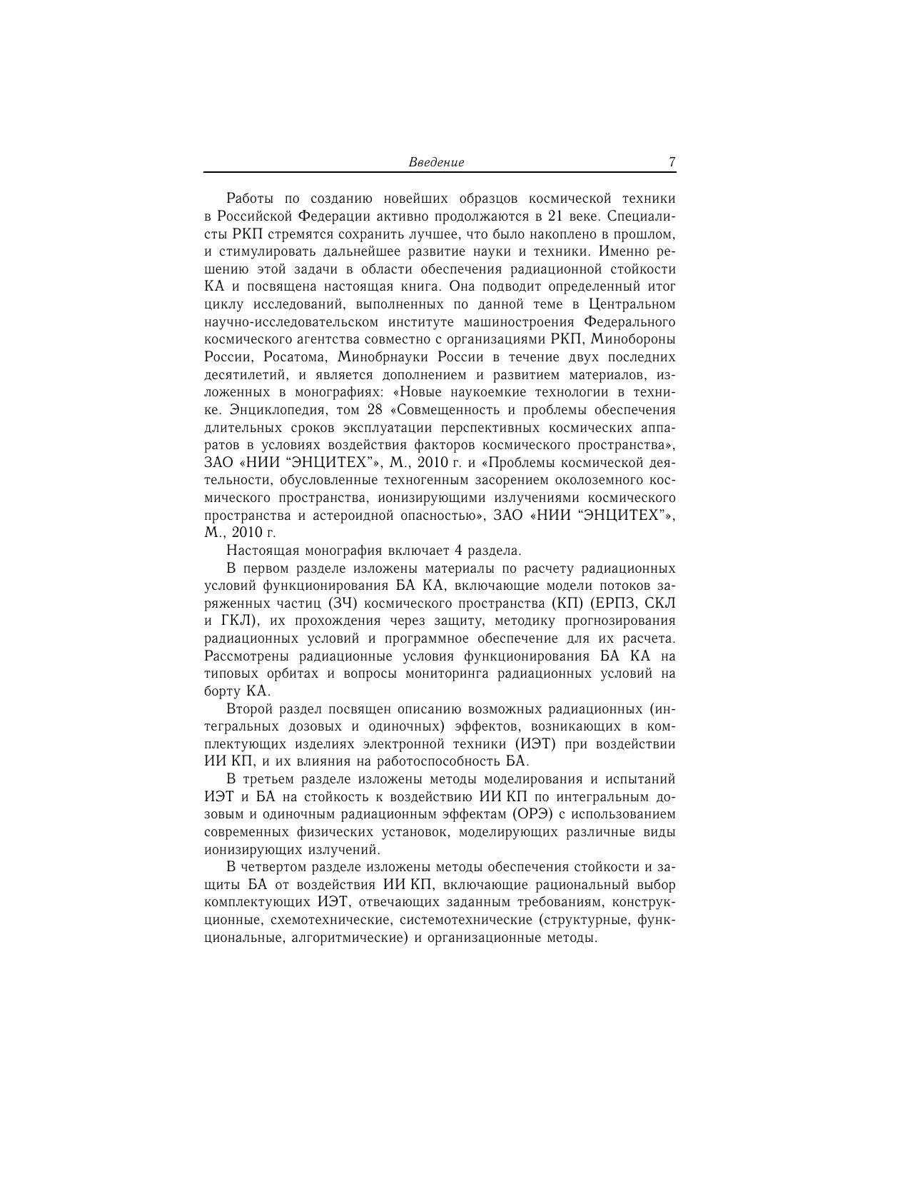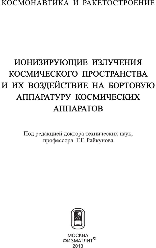 Изложены основные положения и методы обеспечения стойкости бортовой аппаратуры (БА) космических аппаратов (КА) с длительными сроками активного существования к воздействию ионизирующих излучений (ИИ) космического пространства (КП). Представлены современные модели потоков заряженных частиц КП, алгоритмы и программы расчета локальных радиационных условий на борту КА, методы и средства мониторинга радиационных условий на борту КА, методы оценки стойкости БА к воздействию ИИ КП. Предложены методы повышения радиационной стойкости и защиты изделий электронной техники в составе БА.