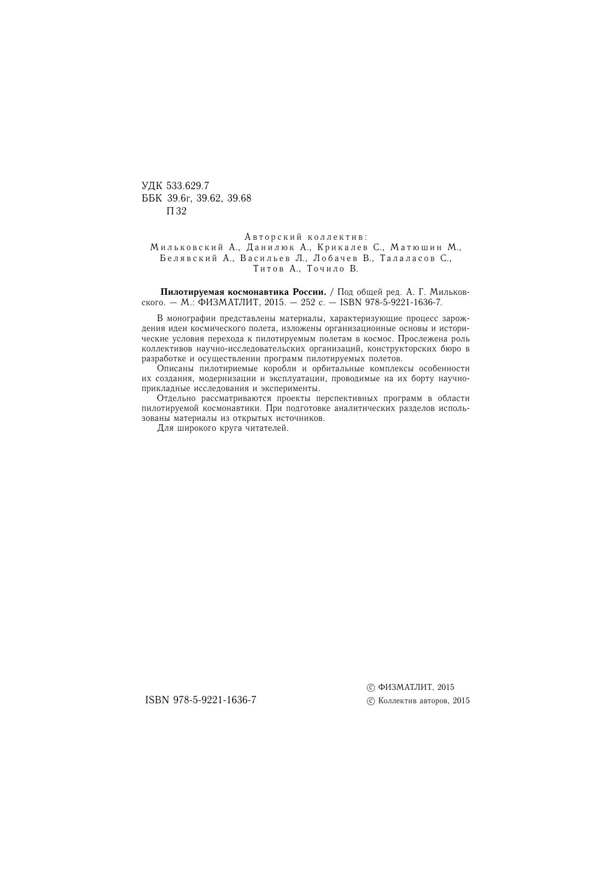 Авторы: Мильковский А., Данилюк А., Крикалев С., Матюшин М.