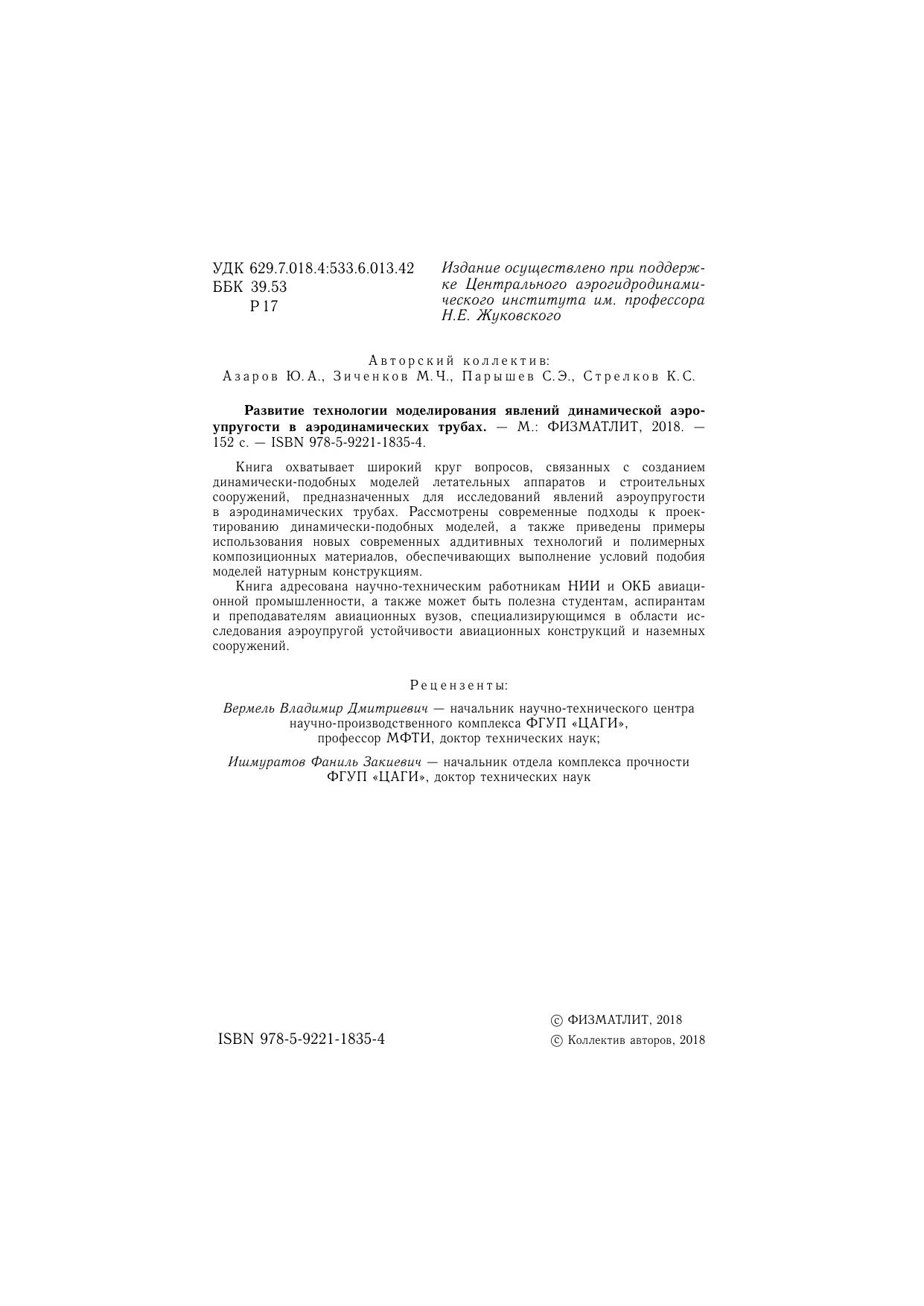 Книга охватывает широкий круг вопросов, связанных с созданием динамически-подобных моделей летательных аппаратов и строительных сооружений, предназначенных для исследований явлений аэроупругости в аэродинамических трубах. Рассмотрены современные подходы к проектированию динамически-подобных моделей, а также приведены примеры использования новых современных аддитивных технологий и полимерных композиционных материалов, обеспечивающих выполнение условий подобия моделей натурным конструкциям. Книга адресована научно-техническим работникам НИИ и ОКБ авиационной промышленности, а также может быть полезна студентам, аспирантам и преподавателям авиационных вузов, специализирующимся в области исследования аэроупругой устойчивости авиационных конструкций и наземных сооружений.