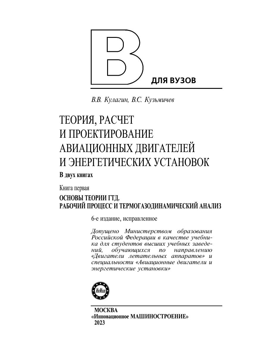 Теория, расчет и проектирование авиационных двигателей и энергетических установок: В 2 кн. Кн. 1. Основы теории ГТД. Рабочий процесс и термогазодинамический анализ