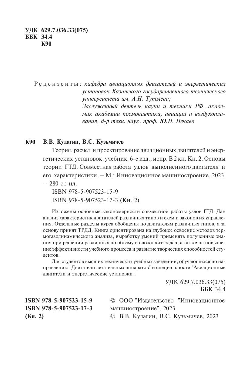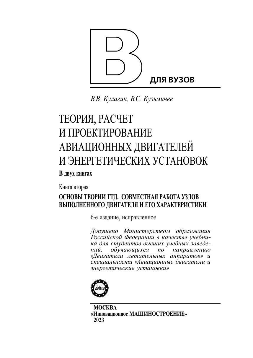 Теория, расчет и проектирование авиационных двигателей и энергетических установок: В 2 кн. Кн. 2. Основы теории ГТД. Совместная работа узлов выполненного двигателя и его характеристики