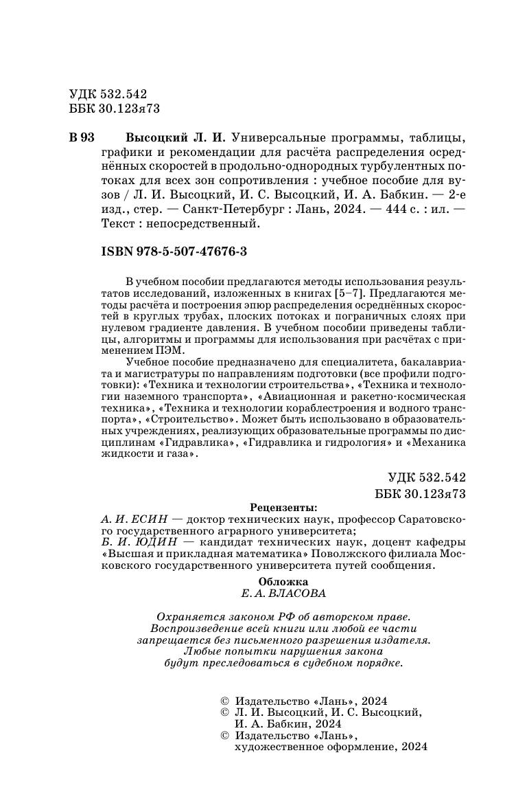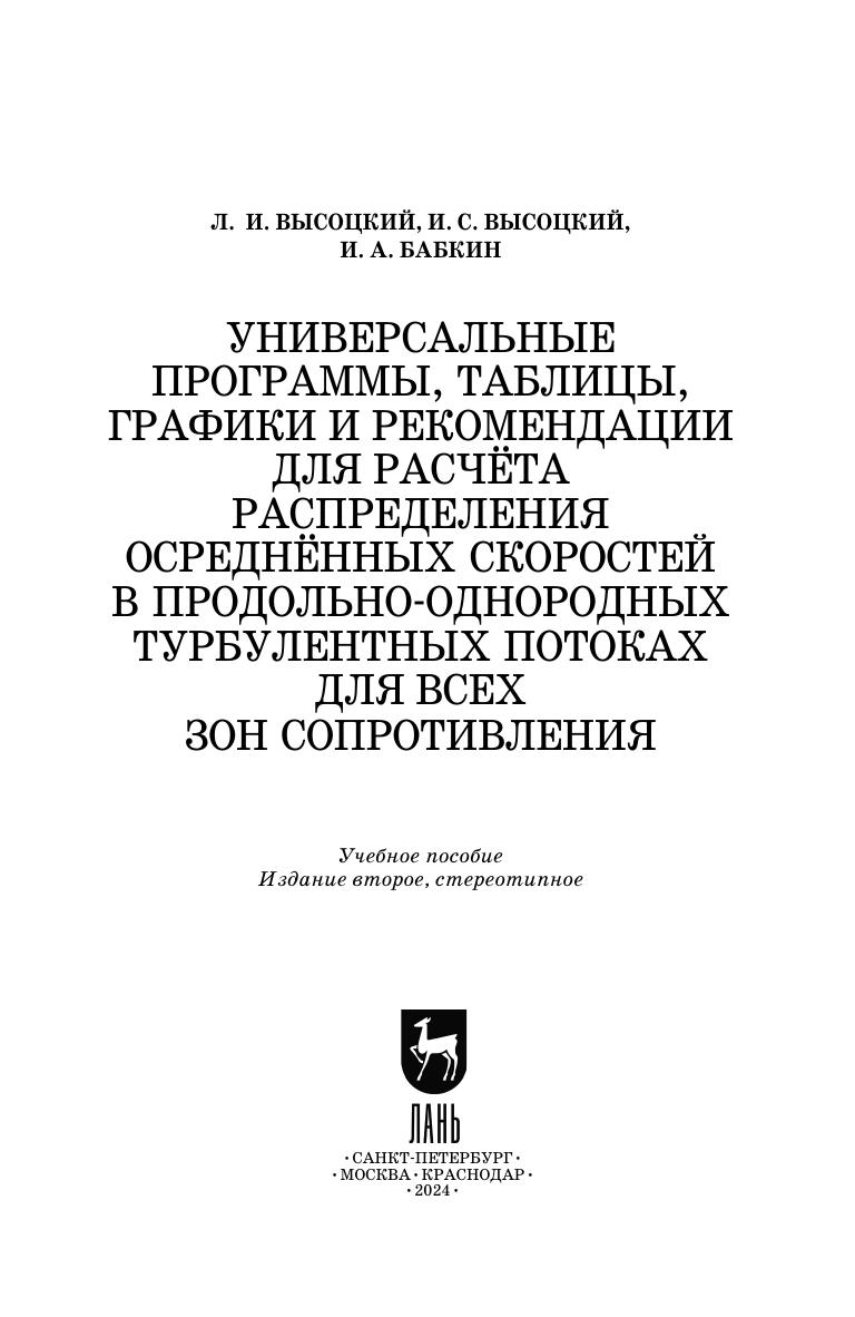 В учебном пособии предлагаются методы использования результатов исследований, изложенных в книгах [5–7]. Предлагаются методы расчета и построения эпюр распределения осредненных скоростей в круглых трубах, плоских потоках и пограничных слоях при нулевом градиенте давления. В учебном пособии приведены таблицы, алгоритмы и программы для использования при расчетах с применением ПЭМ. Учебное пособие предназначено для специалитета, бакалавриата и магистратуры по направлениям подготовки (все профили подготовки): «Техника и технологии строительства», «Техника и технологии наземного транспорта», «Авиационная и ракетно-космическая техника», «Техника и технологии кораблестроения и водного транспорта», «Строительство». Может быть использовано в образовательных учреждениях, реализующих образовательные программы по дисциплинам «Гидравлика», «Гидравлика и гидрология» и «Механика жидкости и газа».