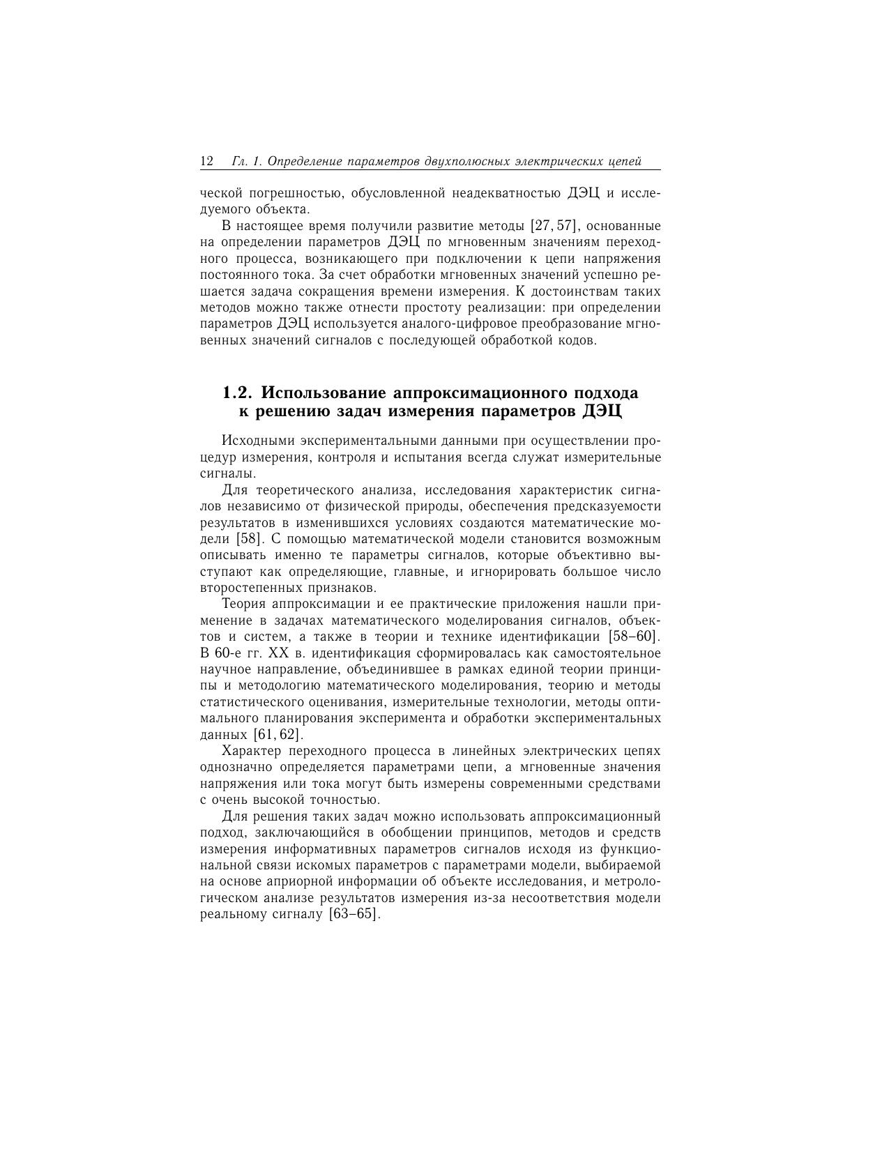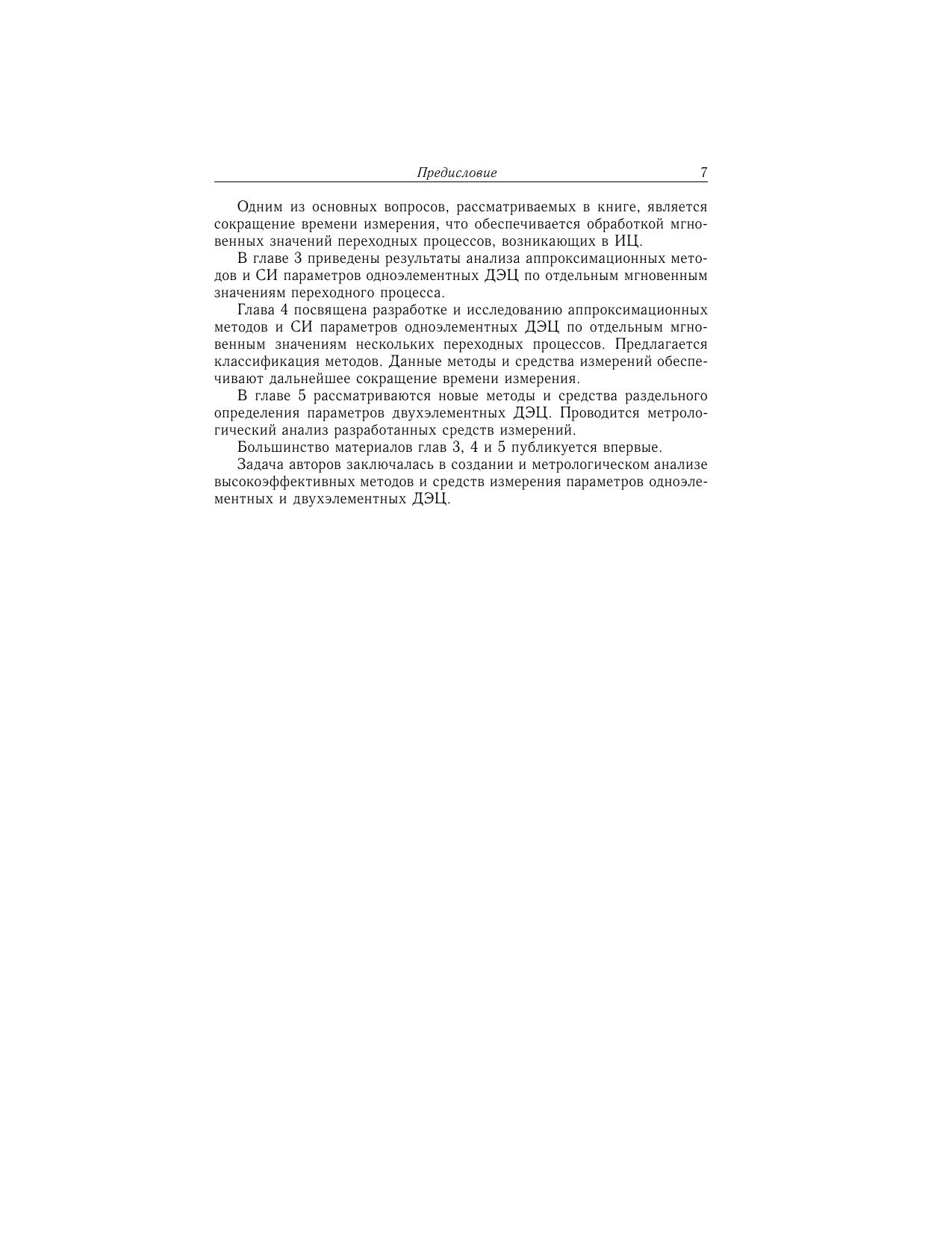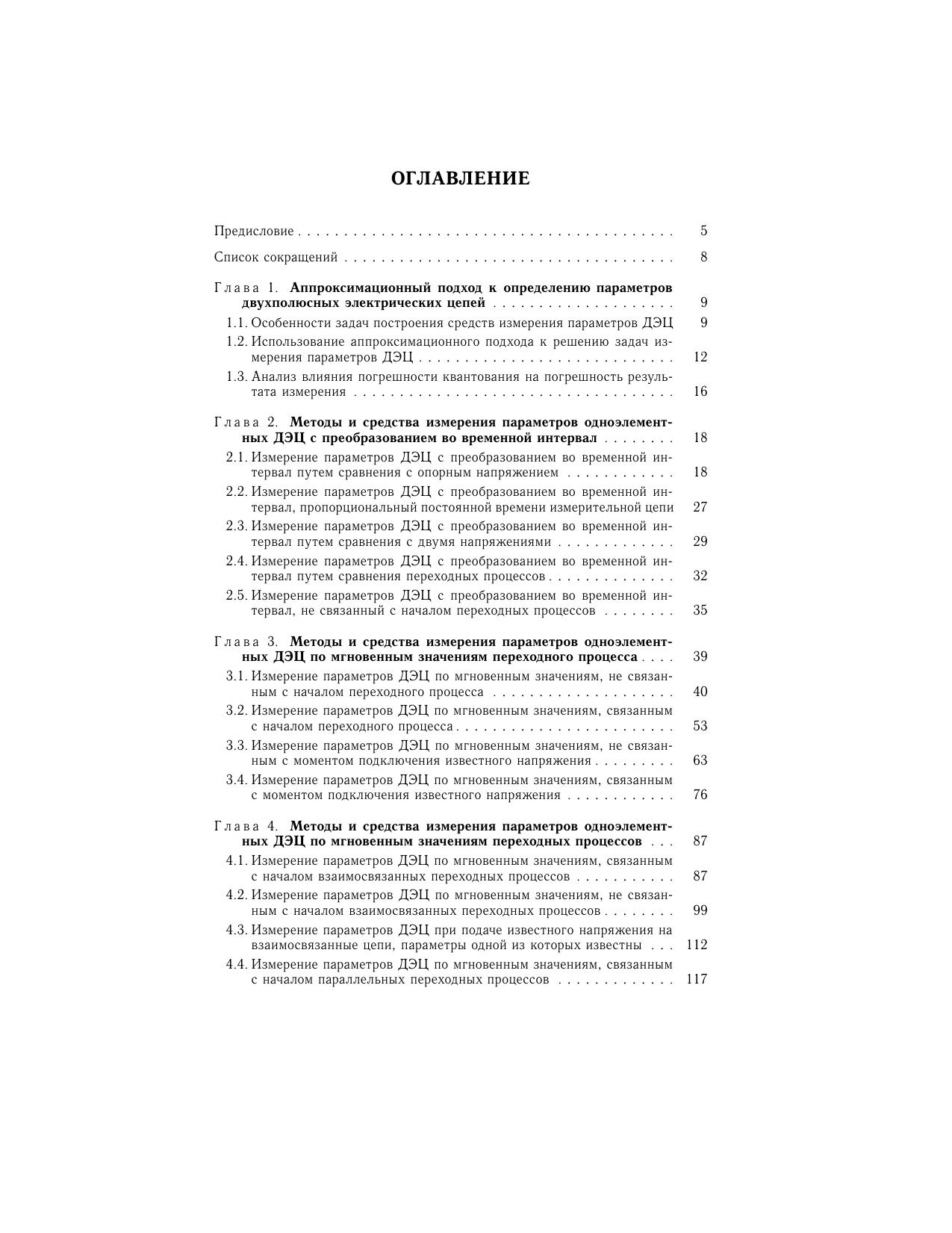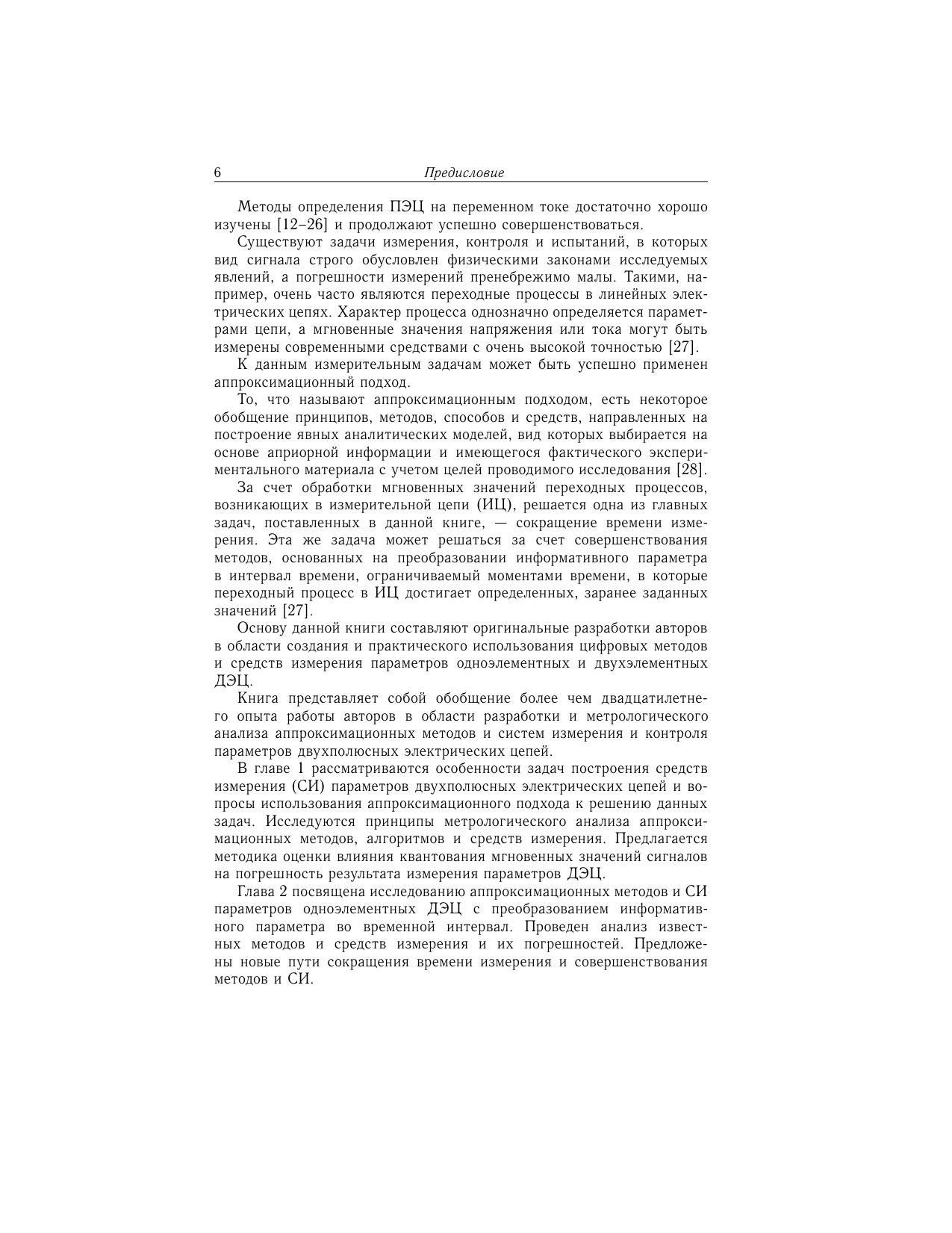 В книге рассматриваются методы и средства измерения параметров линейных двухполюсных электрических цепей по мгновенным значениям переходных процессов. Разработанные методы, алгоритмы и аппаратные средства построены на принципах аппроксимации исследуемых переходных процессов аналитическими моделями, определенными на основе априорной информации о свойствах объектов исследования. Они весьма эффективны при построении контрольно-измерительной аппаратуры для самых различных объектов исследования. Книга может быть полезна инженерам и научным работникам, занятым разработкой технических средств промышленных измерений, контроля, испытаний и автоматизацией измерительных экспериментов, а также аспирантам и студентам старших курсов.