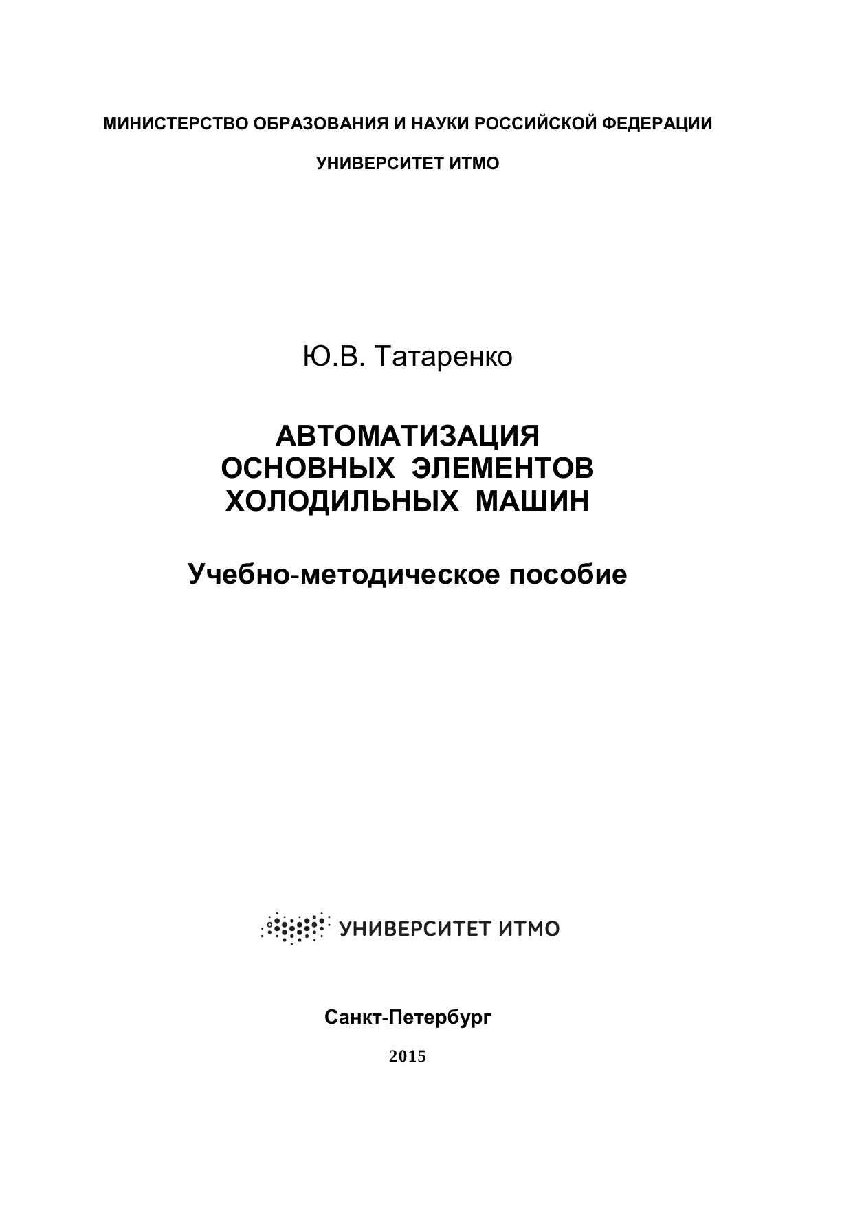 Автоматизация основных элементов холодильных машин: учебно-методическое пособие