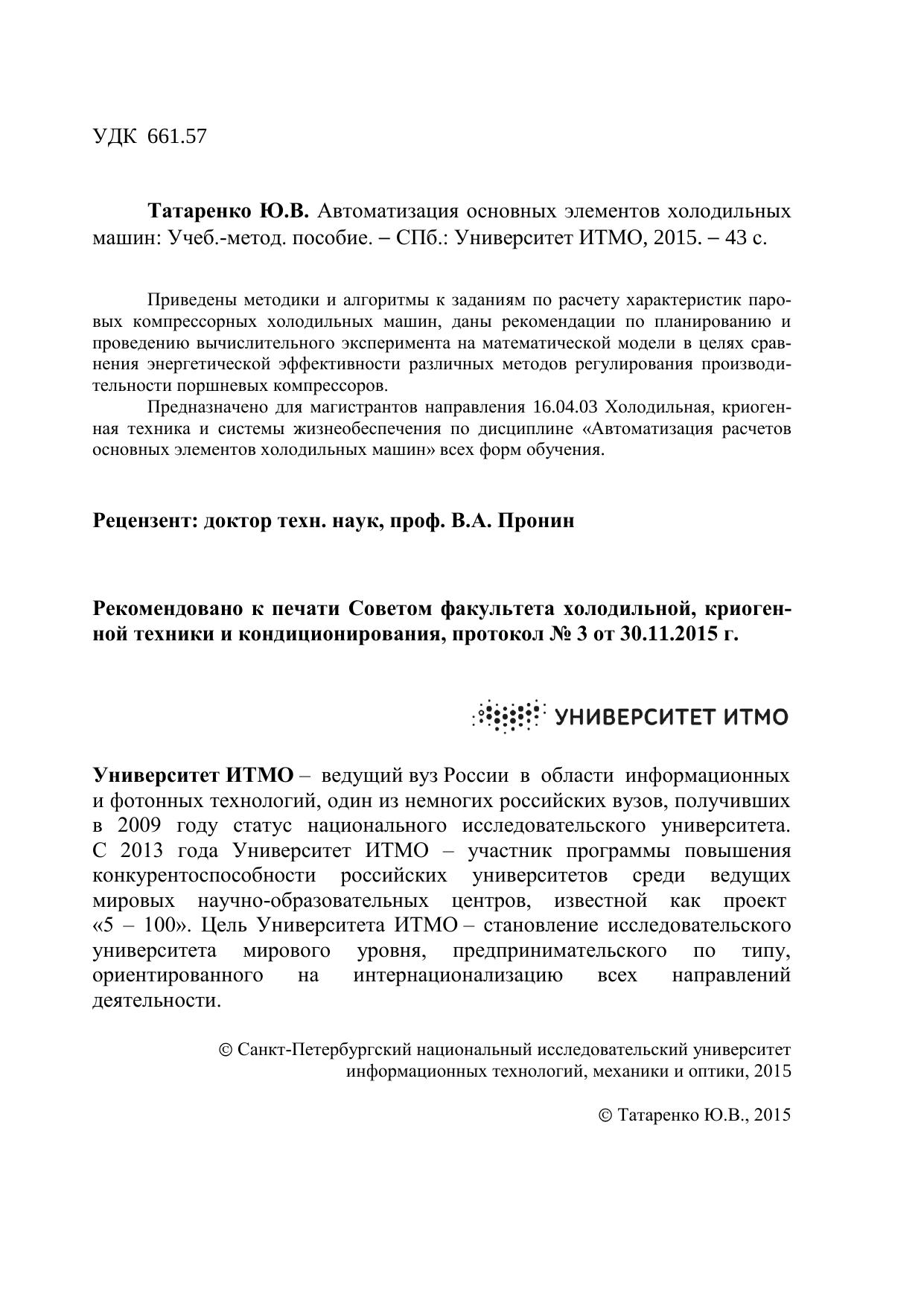 Предназначено для магистрантов направления 16.04.03 Холодильная, криогенная техника и системы жизнеобеспечения по дисциплине «Автоматизация расчетов основных элементов холодильных машин» всех форм обучения.