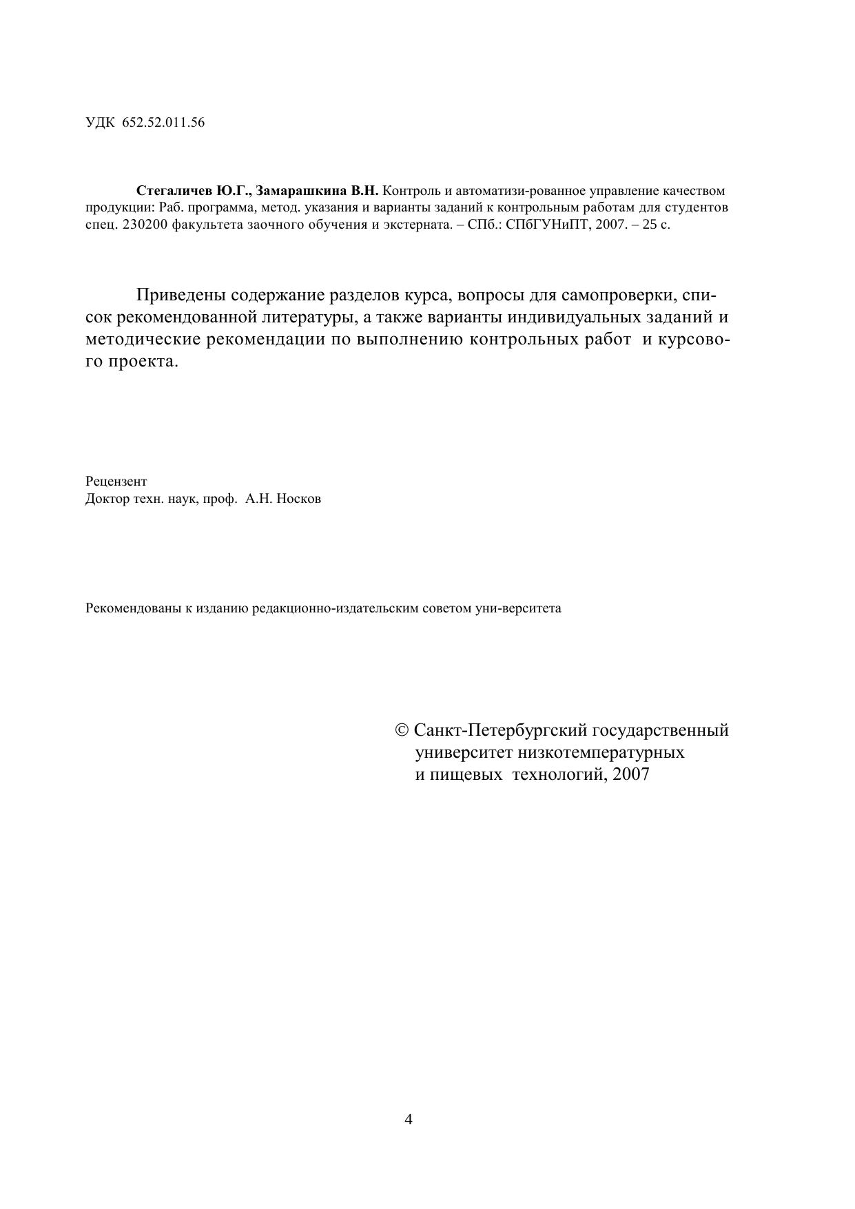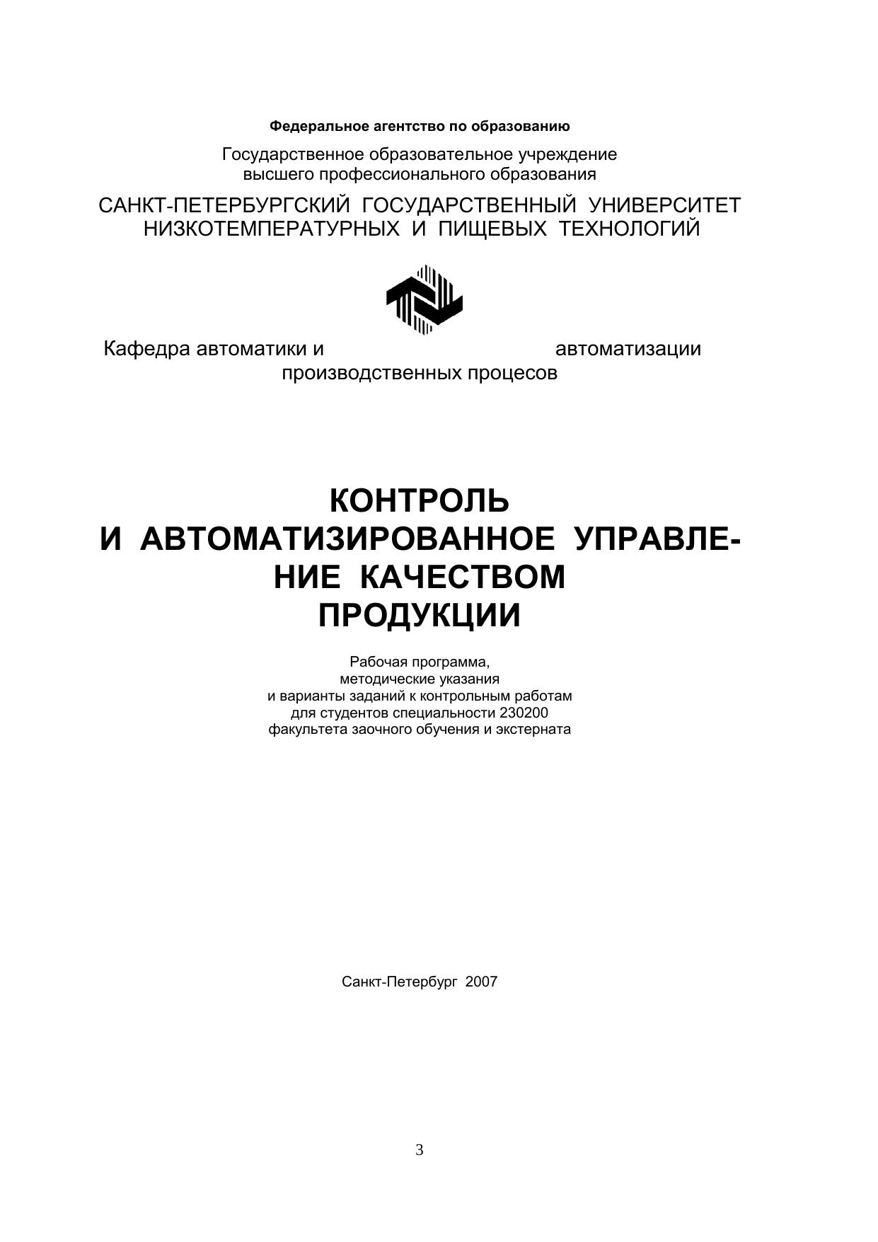 Контроль и автоматизированное управление качеством продукции: Рабочая программа, методические указания и варианты заданий к контрольным работам для студентов спец. 230200 факультета заочного обучения и экстерната