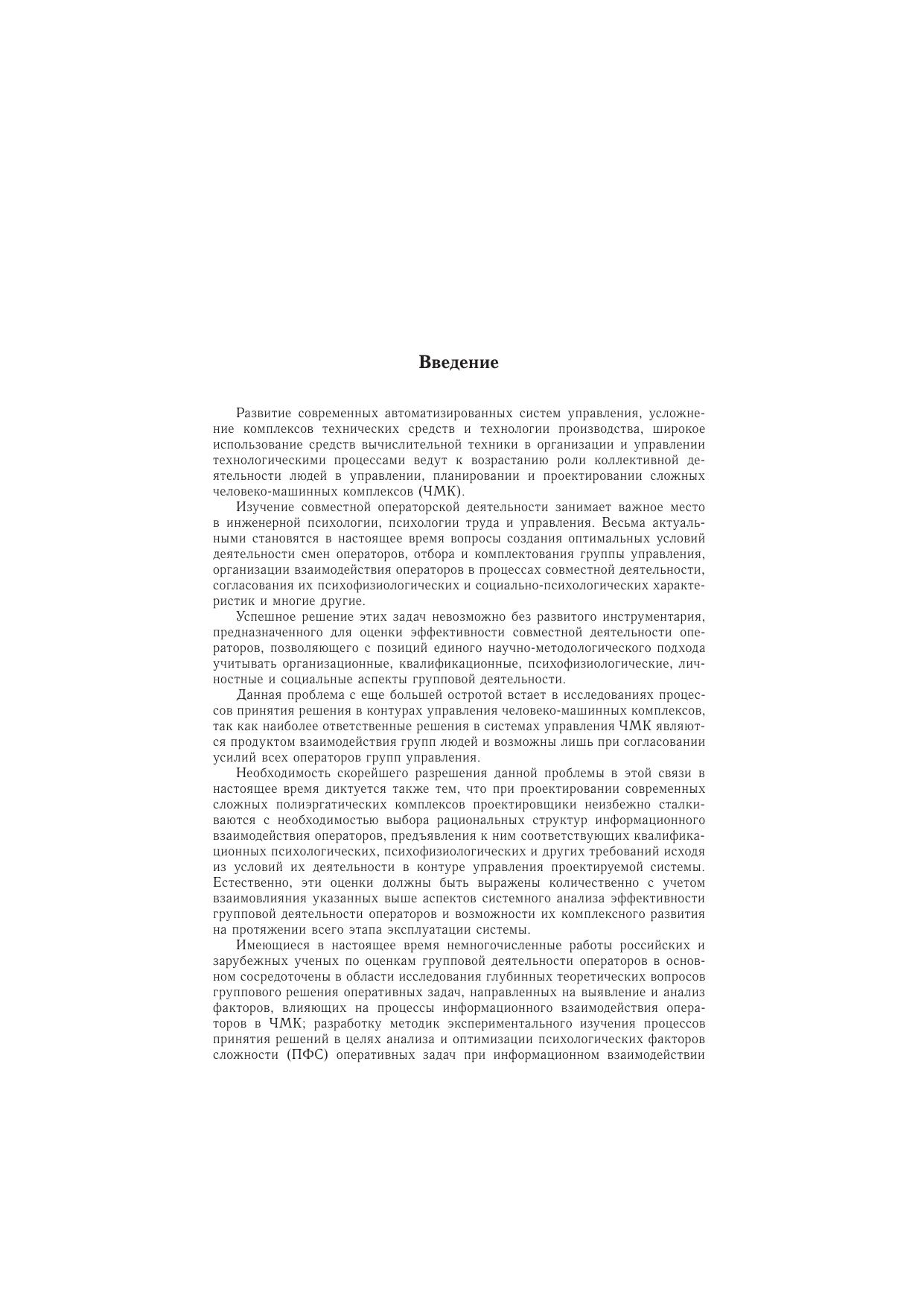 В монографии представлены методы системного анализа эффективности групповой деятельности операторов в системах управления, реализуемые на основе комплекса взаимосвязанных и взаимозависимых моделей, детерминированных процессами функционирования и жизнедеятельности групповых структур на разных уровнях их организации и отражающих диалектическое взаимовлияние и взаимозависимость факторов предметной деятельности, ее внешних условий и социально-психологического состояния группы. Излагаются основные понятия и концепции управления групповой деятельностью операторов, позволяющие раскрыть нестационарный характер ее динамики и особенности координационно-мотивационных, организационных, функциональных и программно-целевых механизмов ее регуляции. Монография предназначена для специалистов по инженерной психологии, психологии труда, эргономике, проектированию и эксплуатации сложных человеко-машинных комплексов.