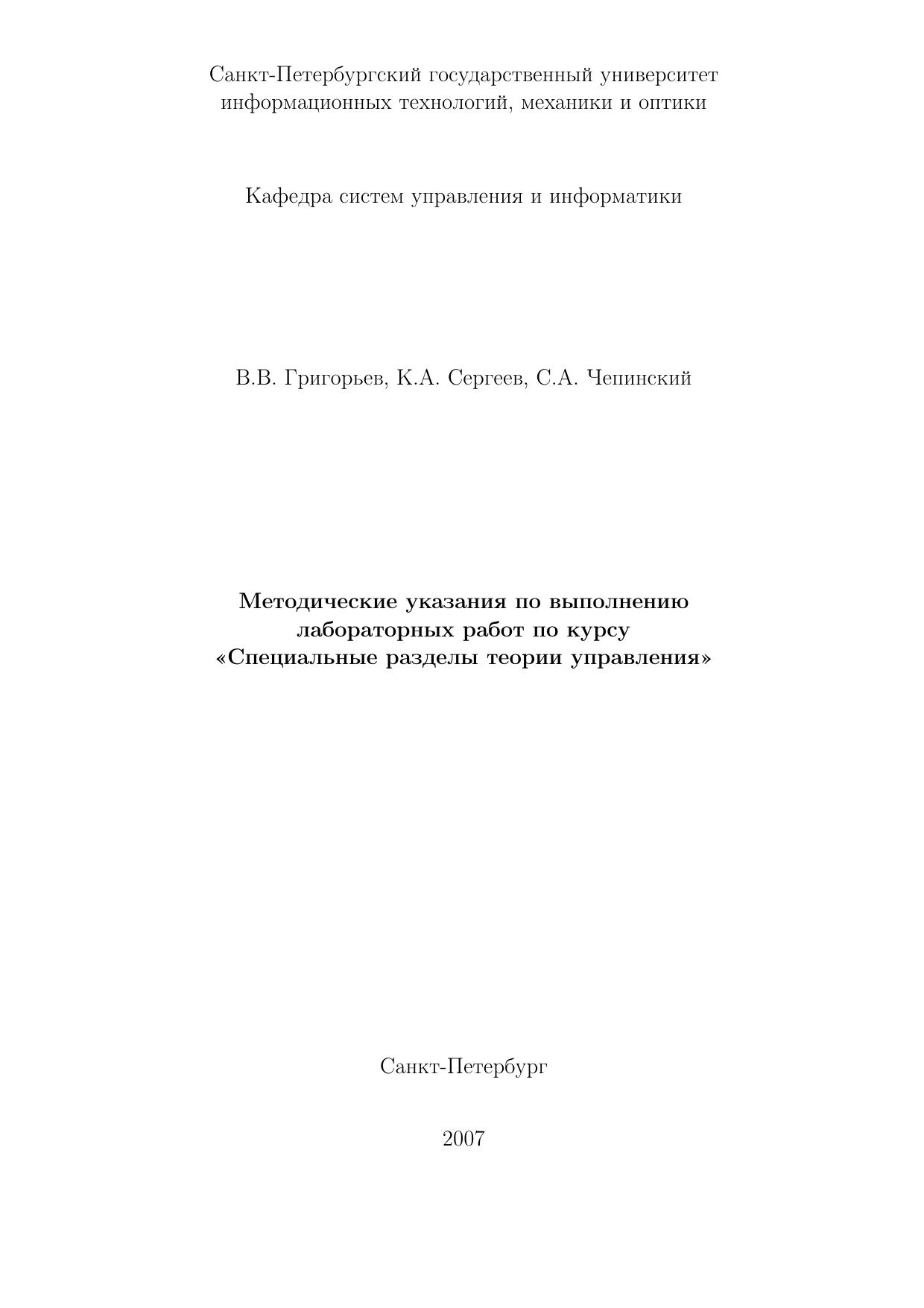 Методические указания по выполнению лабораторных работ по курсу: Специальные разделы теории управления