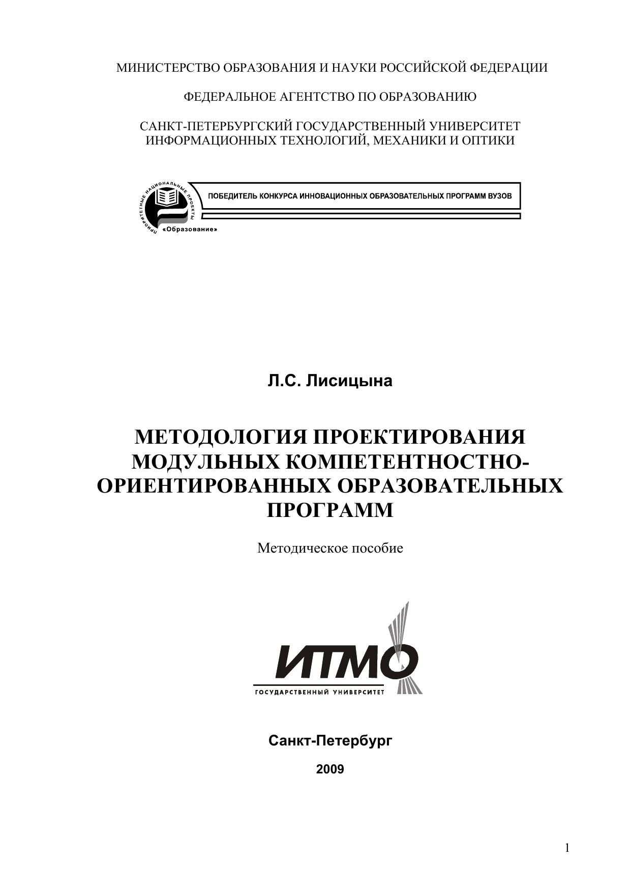 Методология проектирования модульных компетентностно-ориентированных образовательных программ. Методическое пособие
