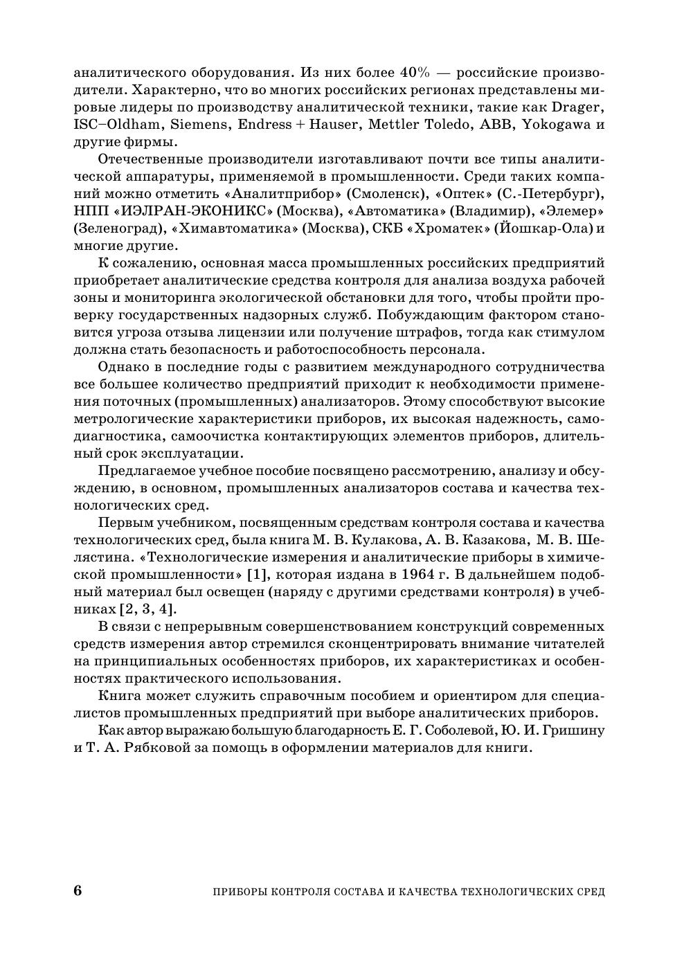 В книге дается описание методов измерения и автоматических приборов, предназначенных для анализа состава и качества технологических газов и растворов. Кроме этого, излагаются физические основы, принципы действия и некоторые конструкции приборов, а также основные справочные материалы, необходимые для выполнения курсовых и дипломных проектов. Книга подготовлена в соответствии с учебной программой курса «Технологические измерения и приборы» и предназначена в качестве пособия для студентов очного, заочного и вечернего отделений по направлению «Автоматизация и управление», профилю «Автоматизация технологических процессов и производств» (для химических и пищевых производств).