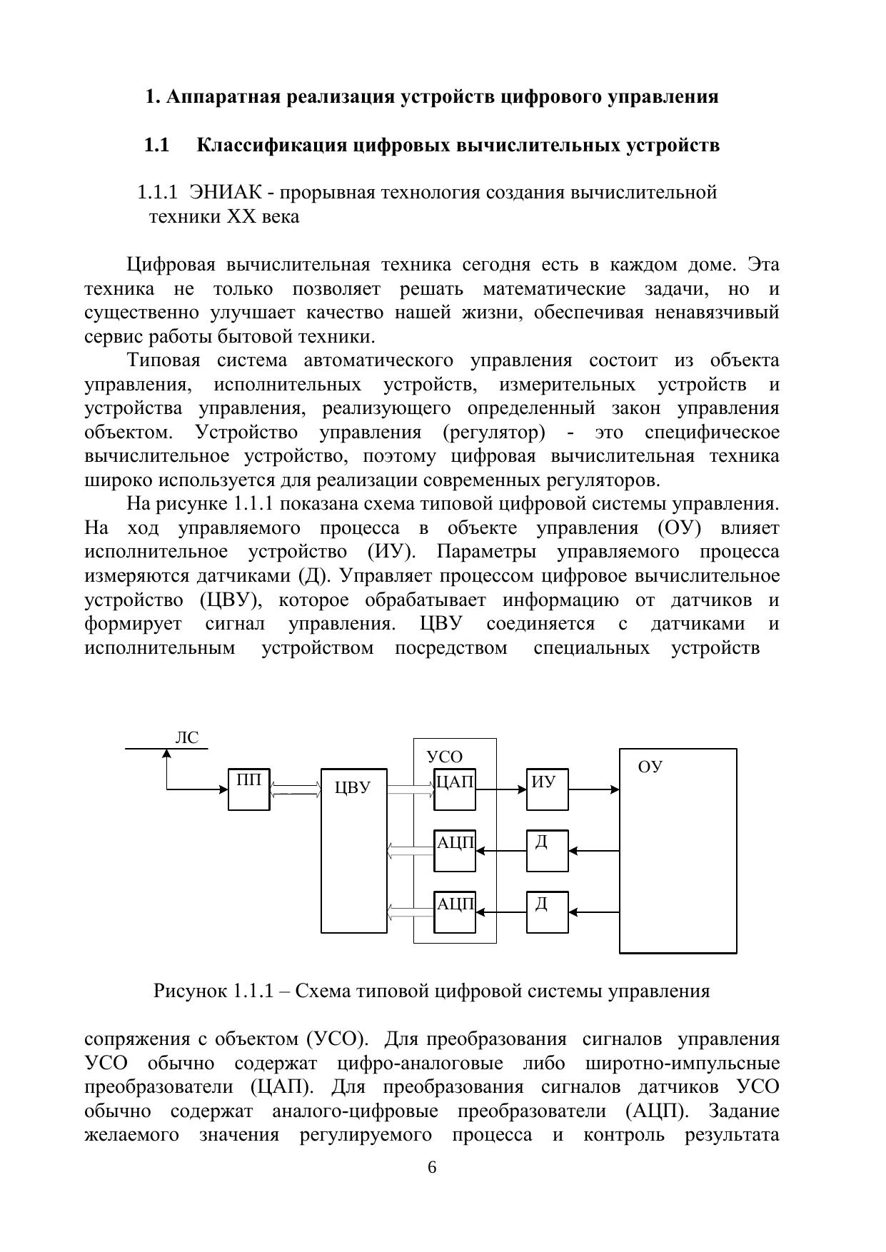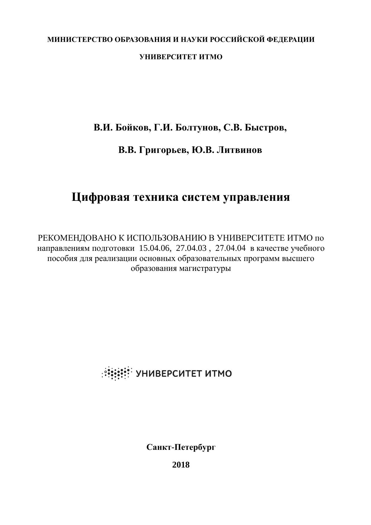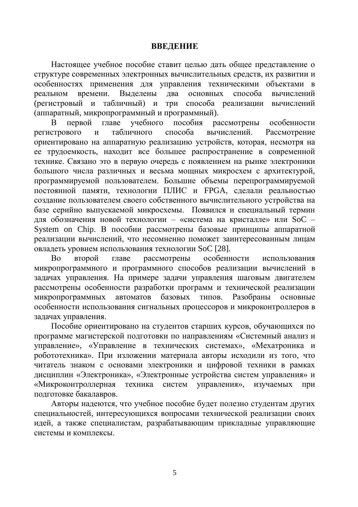 В учебном пособии дано общее представление о способах реализации современных цифровых вычислительных средств, их развитии и особенностях применения в задачах управления техническими объектами. Рассмотрены особенности аппаратной реализации регистрового и табличного способов вычислений. На примере задачи управления шаговым двигателем рассмотрены особенности разработки программ и технической реализации микропрограммных автоматов основных типов. В учебных целях при синтезе автоматов использованы только «ручные» методы. Также разобраны особенности применения сигнальных процессоров и микроконтроллеров в задачах обработки информации и управления. Пособие ориентировано на студентов старших курсов, обучающихся по направлениям подготовки: «Системный анализ и управление», «Управление в технических системах», «Мехатроника и робототехника». При изложении материала авторы исходили из того, что читатель знаком с основами электроники и цифровой техники в рамках дисциплин «Электроника», «Электронные устройства систем управления» и «Микроконтроллерная техника систем управления».