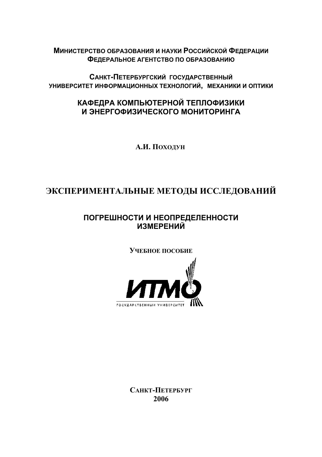 Экспериментальные методы исследований. Погрешности и неопределенности измерений. Учебное пособие