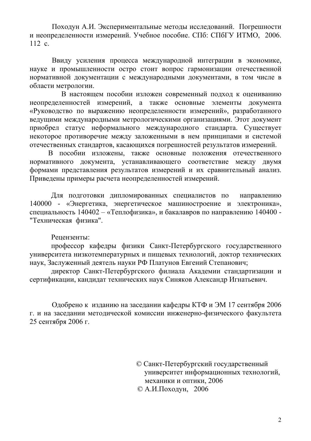 В настоящем пособии изложен современный подход к оцениванию неопределенностей измерений, а также основные элементы документа «Руководство по выражению неопределенности измерений», разработанного ведущими международными метрологическими организациями. Этот документ приобрел статус неформального международного стандарта. Существует некоторое противоречие между заложенными в нем принципами и системой отечественных стандартов, касающихся погрешностей результатов измерений.