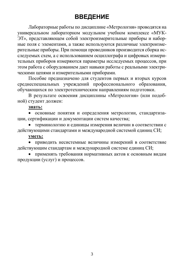 В учебно-методическом пособии изложен порядок выполнения работ, описана лабораторная установка, даны задания для выполнения работ. Соответствует современным требованиям Федерального государственного образовательного стандарта среднего профессионального образования и профессиональным квалификационным требованиям. Пособие предназначено для выполнения лабораторных работ по дисциплинам «Метрология», «Метрология, стандартизация и сертификация», «Метрология и измерительная техника» студентами первых и вторых курсов среднеспециальных учреждений профессионального образования, обучающимися по электротехническим специальностям.