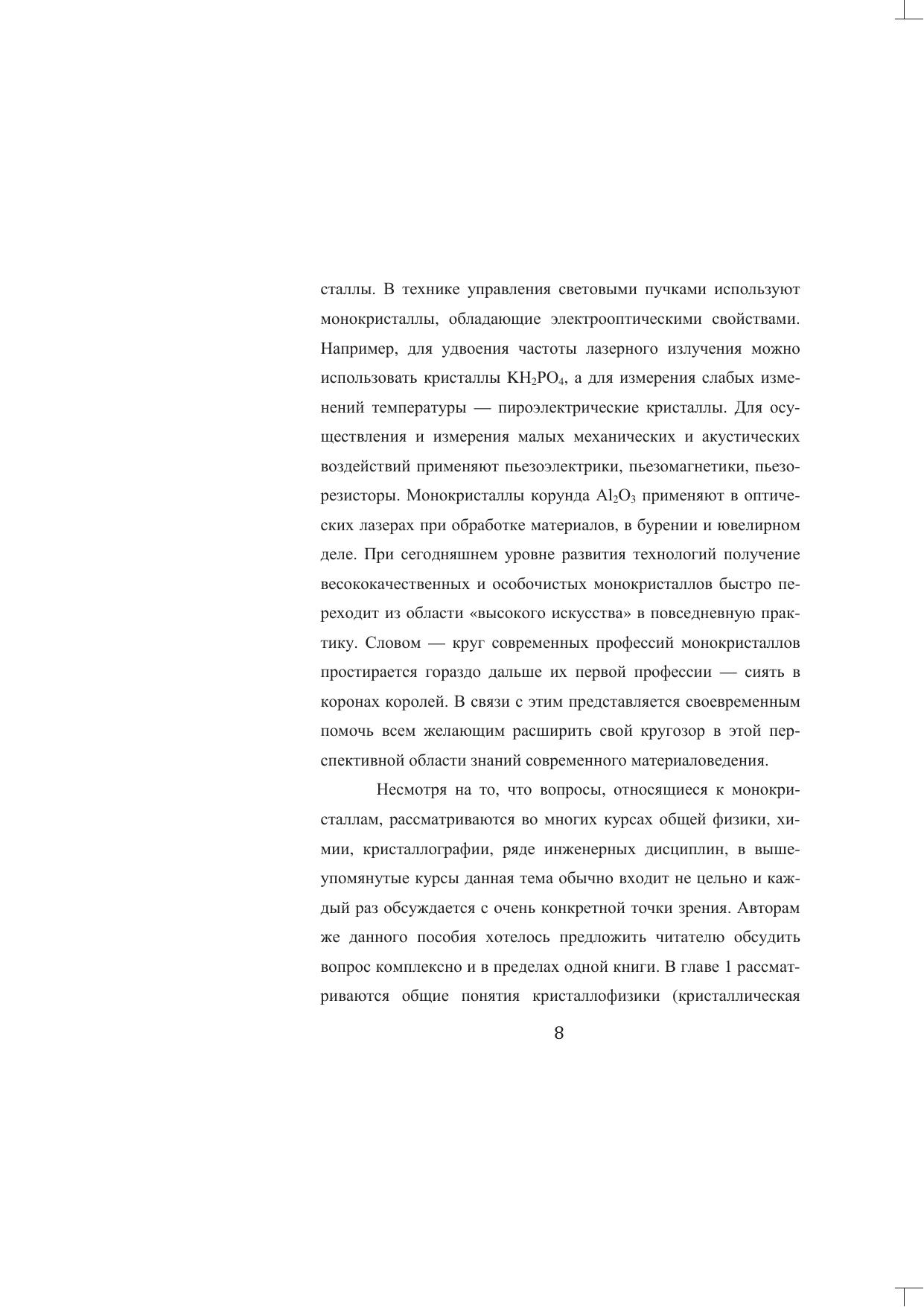 В учебное пособие включены сведения о методах получения монокристаллов, их кристаллографического описания и исследования реальной структуры, приведены результаты испытаний механических и магнитных свойств некоторых металлических монокристаллов, а также обсуждаются примеры необычных монокристаллов, возникающих в результате жизнедеятельности живых систем или создаваемых искусственно для применения в разных отраслях техники.