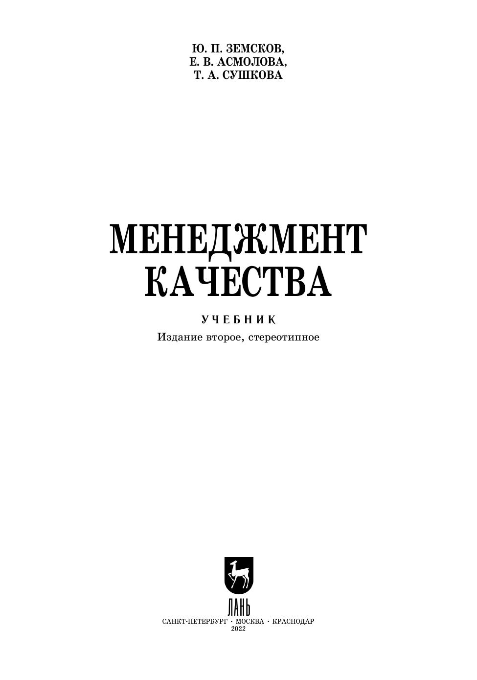 Учебник предназначен для студентов средних профессиональных учреждений. Целью книги являются освоение способов оценки и управления качеством продукции, процессов и услуг, грамотная и профессиональная постановка цели, разработка модели управления качеством, а также осуществление оценки качества. В результате изучения теоретического материала обучающиеся должны освоить теоретические основы системы менеджмента качества, качество как объект управления, организационно-экономические условия обеспечения качества, а также качество и конкурентоспособность продукции, процессов и услуг. Соответствует современным требованиям Федерального государственного образовательного стандарта среднего профессионального образования и профессиональным квалификационным требованиям. Учебник предназначен для учащихся средних специальных учебных заведений, обучающихся по специальности «Управление качеством продукции, процессов и услуг (по отраслям)».