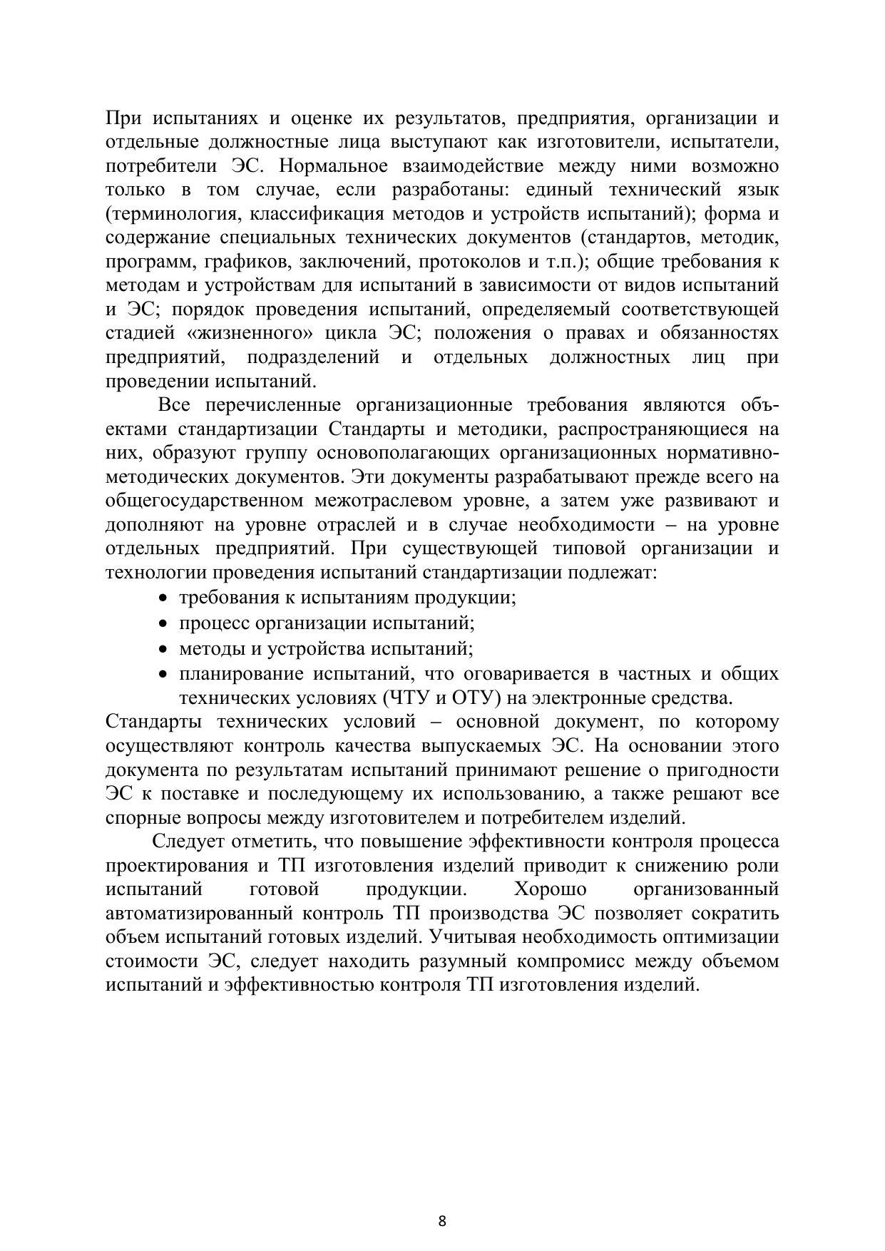 В учебном пособии охвачен круг вопросов, связанных с испытаниями ЭВС, устройствами испытаний, инженерными и статистическими расчетами. Предназначено для обучения студентов в рамках общепрофессиональных дисциплин ОПД.Ф.05 «Метрология, стандартизация и сертификация», ОПД.Ф.05.01 «Метрология, стандартизация и технические измерения» и ОПД.Ф.06 «Метрология и электрорадиоизмерения» учебного плана подготовки бакалавров по направлениям 211000 – «Конструирование и технология электронных средств», 11.03.03. – «Проектирование и технология электронно-вычислительных средств».