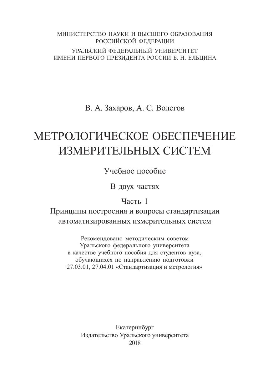Метрологическое обеспечение измерительных систем: в 2 ч. Ч. 1. Принципы построения и вопросы стандартизации автоматизированных измерительных систем