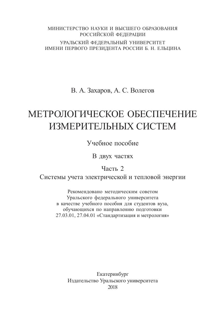 Метрологическое обеспечение измерительных систем: в 2 ч. Ч. 2. Системы учета электрической и тепловой энергии