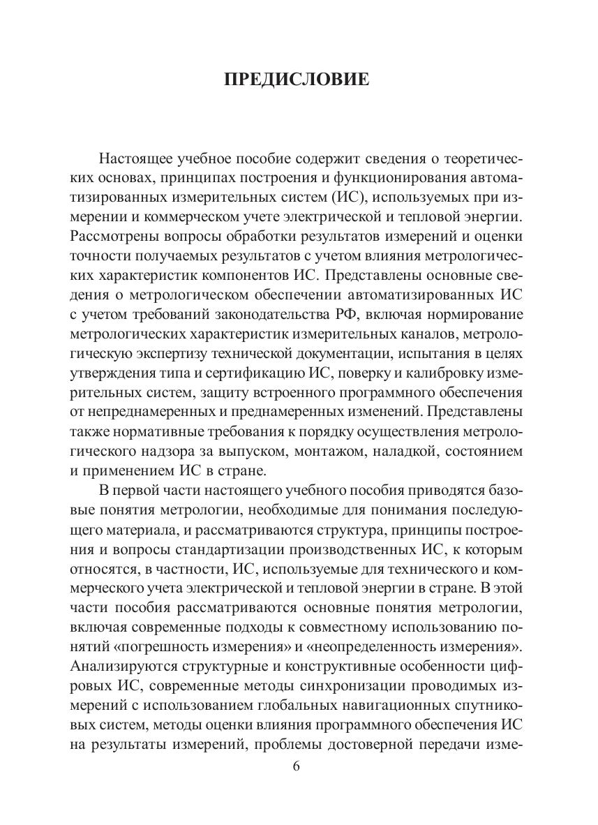 Учебное пособие содержит базовые понятия метрологии и рассматривает структуру, принципы построения и вопросы стандартизации производственных измерительных систем (ИС). Во второй части пособия даны сведения об основных процедурах метрологического обеспечения ИС, теоретических основах, принципах построения и функционирования, нормативных требованиях к ИС. Рассмотрены вопросы обработки результатов измерений и оценки точности получаемых результатов. Для студентов, обучающихся по программам бакалавриата и магистратуры, может быть полезно специалистам, занимающимся созданием, эксплуатацией и метрологическим обеспечением измерительных систем.