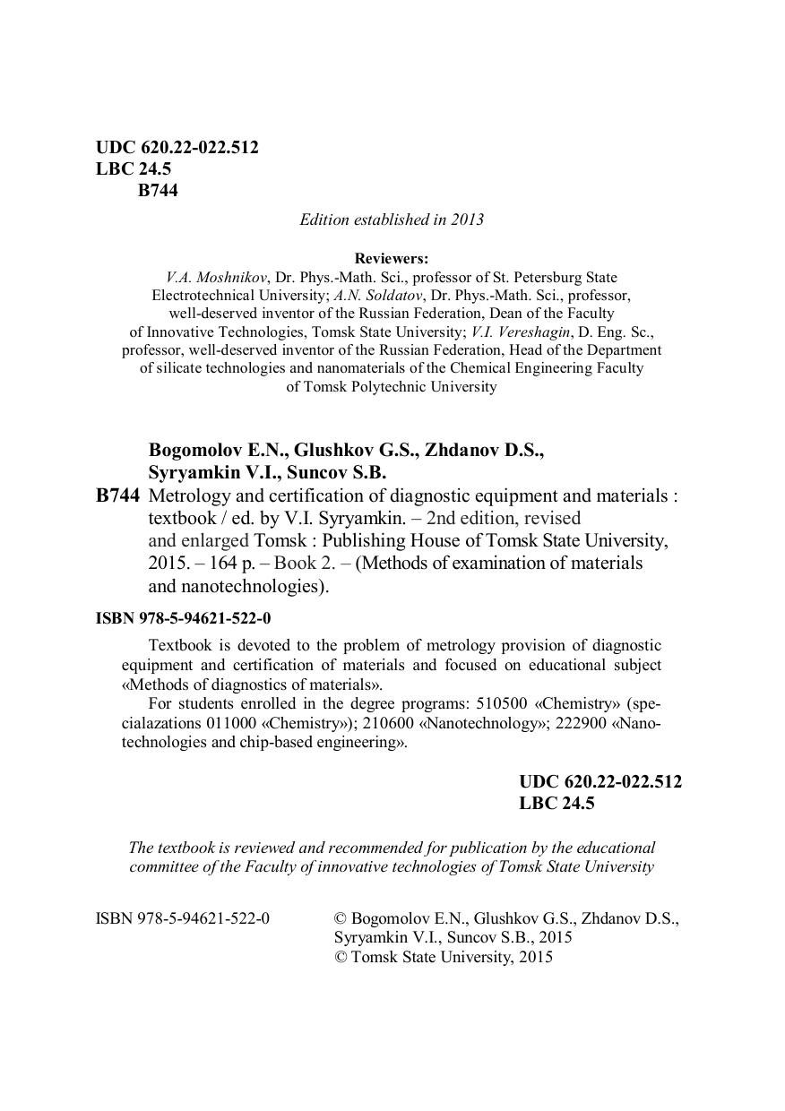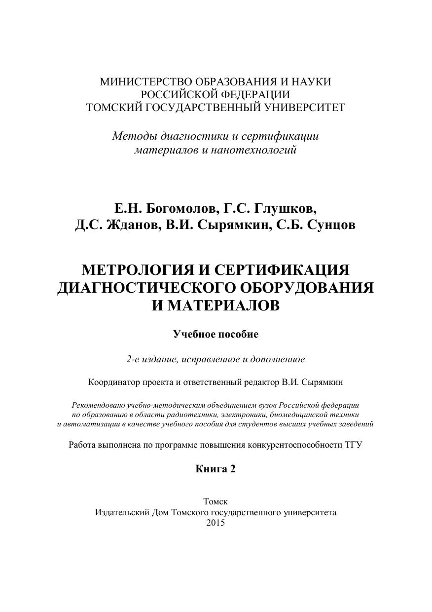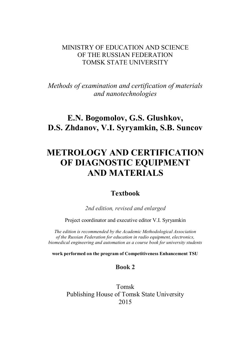 Метрология и сертификация диагностического оборудования и материалов. Книга 2. Методы диагностики и сертификации материалов и нанотехнологий