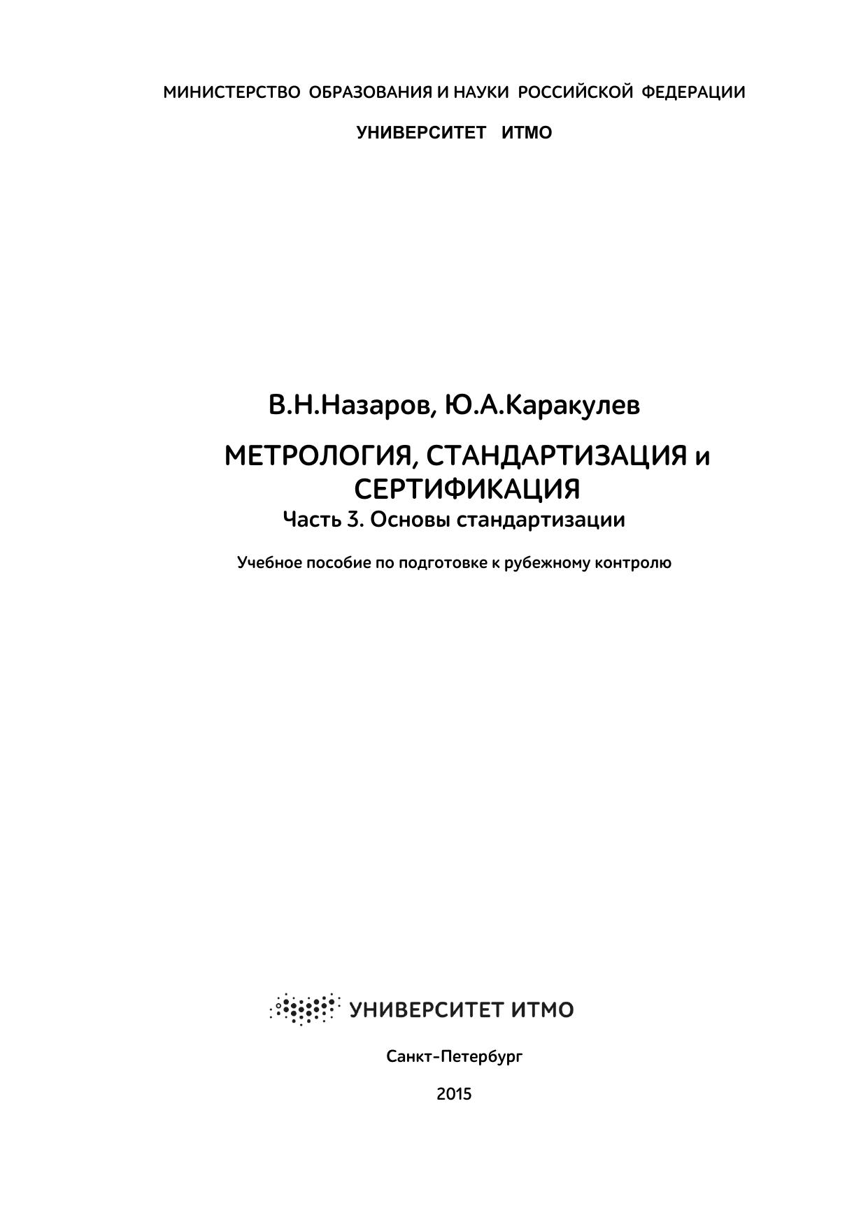 Метрология, стандартизация и сертификация. Часть 3. Основы стандартизации. Учебное пособие по подготовке к рубежному контролю