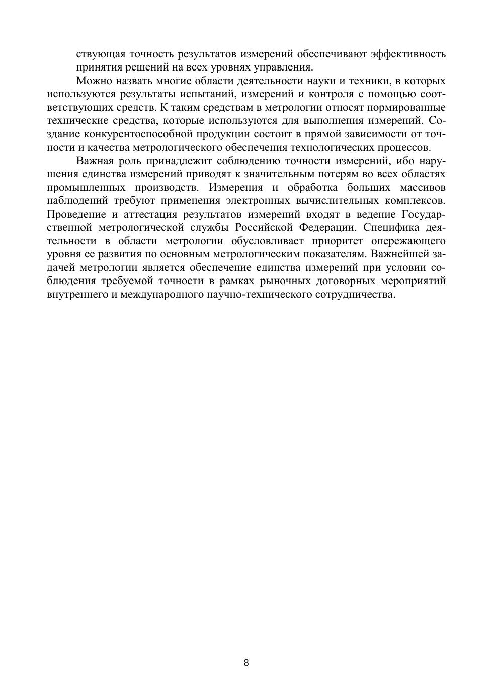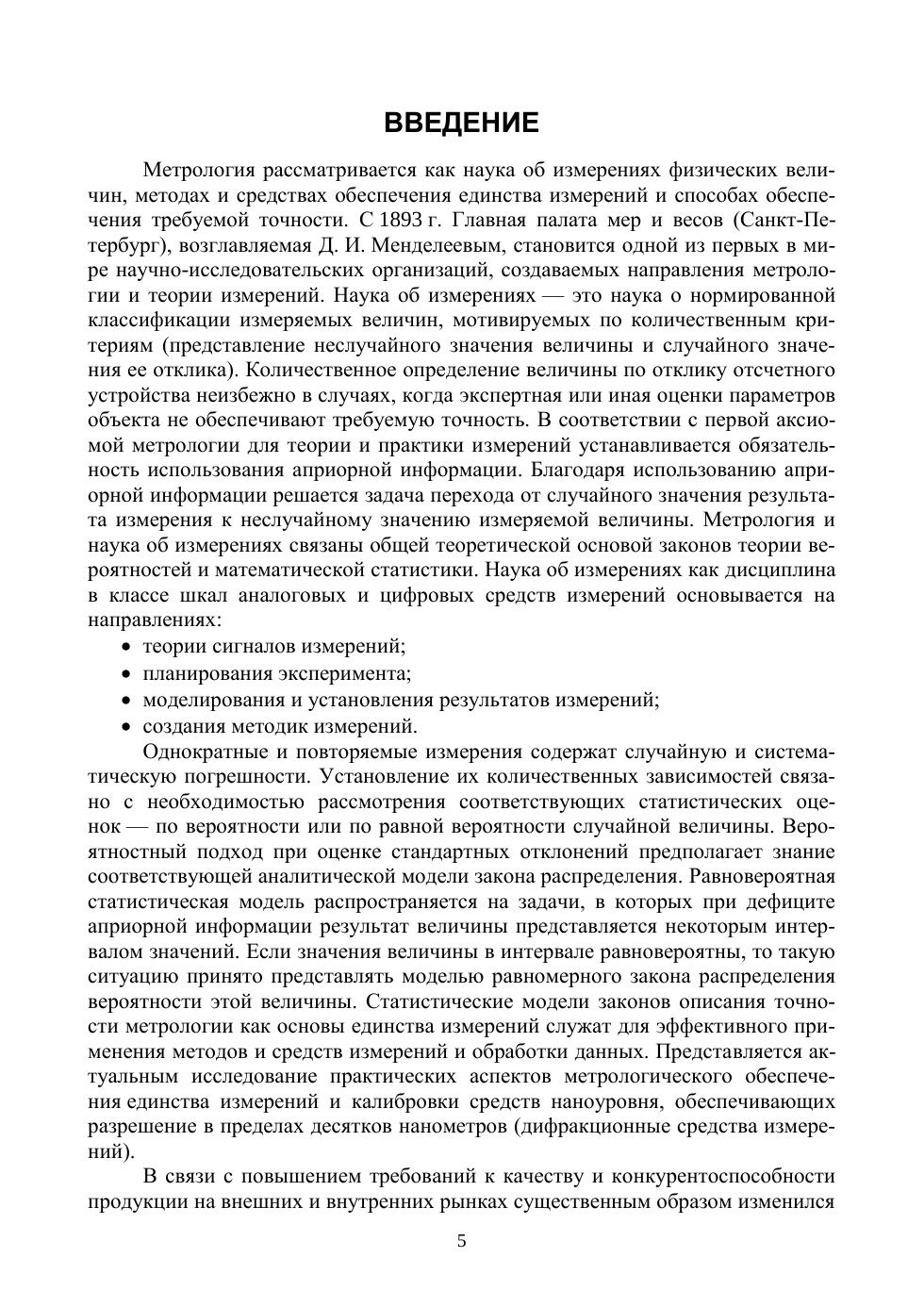 В учебнике разработаны основные положения теоретической метрологии, рекомендованы модели определения результатов однократных и повторяемых опытов, представлены исследования, направленные на повышение точности и эффективности общей теории и практики измерений. Рассмотрены процедуры сличения и передачи единицы размера от первичного эталона к рабочим средствам измерений и контроля. Предложенные модели и методы анализа измерений являются научной и методологической основой обеспечения качества измерений, обеспечения международного научно-технического сотрудничества, развития экономики страны. Учебник рекомендуется для студентов технических специальностей вузов. Справочно-методические материалы учебника могут оказаться полезными для преподавателей и аспирантов других специальностей вузов и работников метрологических служб предприятий.