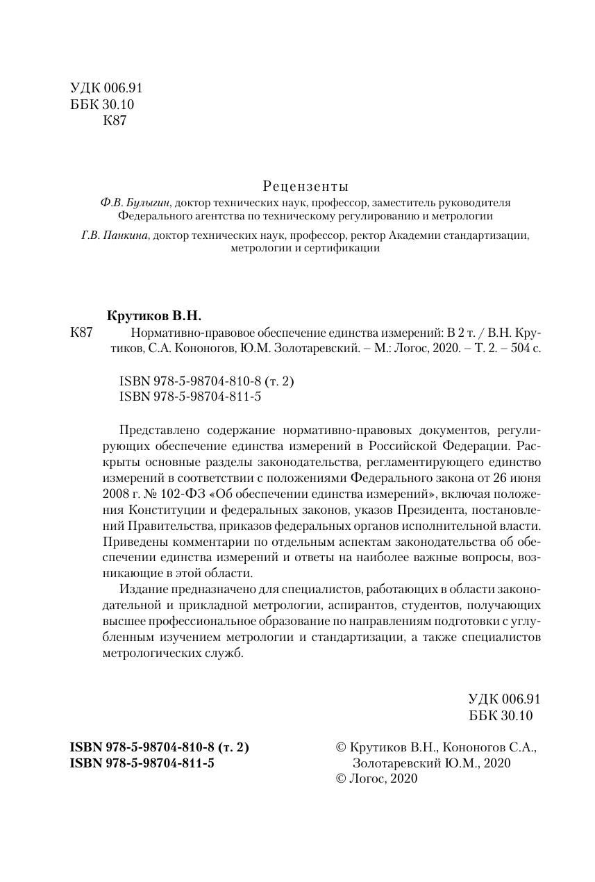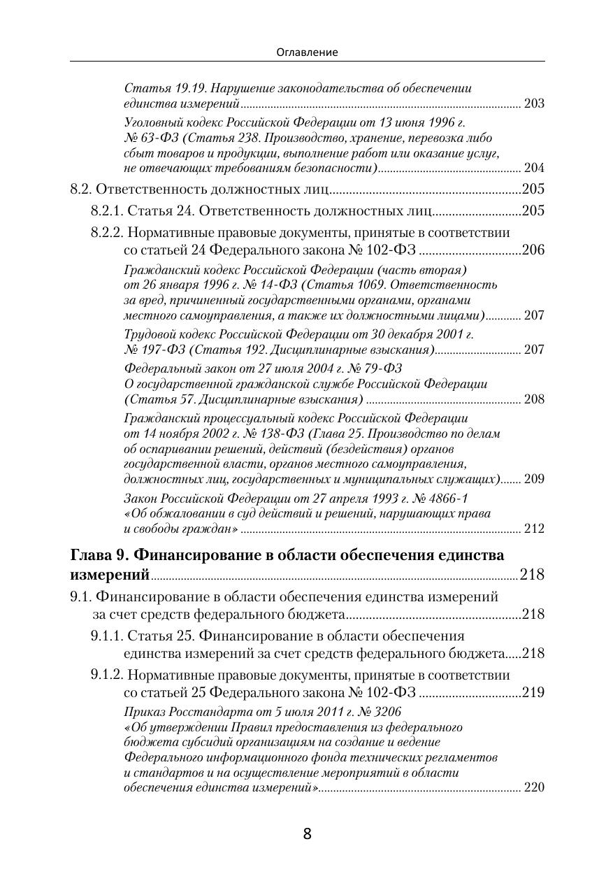Представлено содержание нормативно-правовых документов, регулирующих обеспечение единства измерений в Российской Федерации. Раскрыты основные разделы законодательства, регламентирующего единство измерений в соответствии с положениями Федерального закона от 26 июня 2008 г. № 102-ФЗ «Об обеспечении единства измерений», включая положения Конституции и федеральных законов, указов Президента, постановлений Правительства, приказов федеральных органов исполнительной власти. Приведены комментарии по отдельным аспектам законодательства об обеспечении единства измерений и ответы на наиболее важные вопросы, возникающие в этой области. Издание предназначено для специалистов, работающих в области законодательной и прикладной метро логии, аспирантов, студентов, получающих высшее профессиональное образование по направлениям подготовки с углубленным изучением метрологии и стандартизации, а также специалистов метрологических служб.