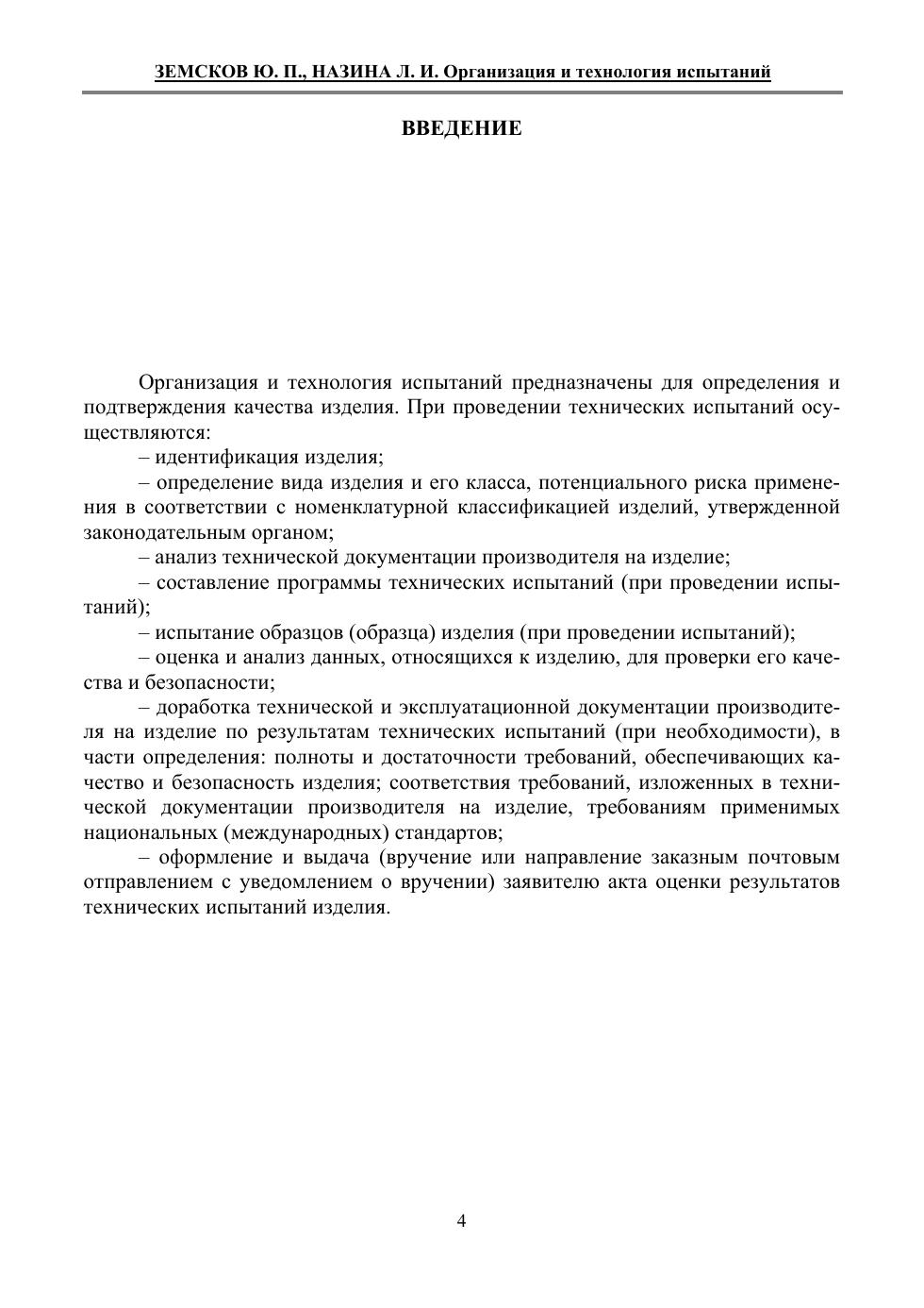 Изложены краткие теоретические сведения об организации и технологии проведения испытаний. Рассмотрены вопросы теоретических основ организации испытаний, классификация испытаний и контроля, характеристика некоторых испытаний, оборудование и приборы, которые применяются в испытаниях, формирование результатов испытаний и их обработка, а также правила оформления результатов испытаний. Учебное пособие предназначено для подготовки выпускников по направлениям «Стандартизация и метрология» и «Управление качеством» и изучения теоретического материала по дисциплине «Организация и технология испытаний».